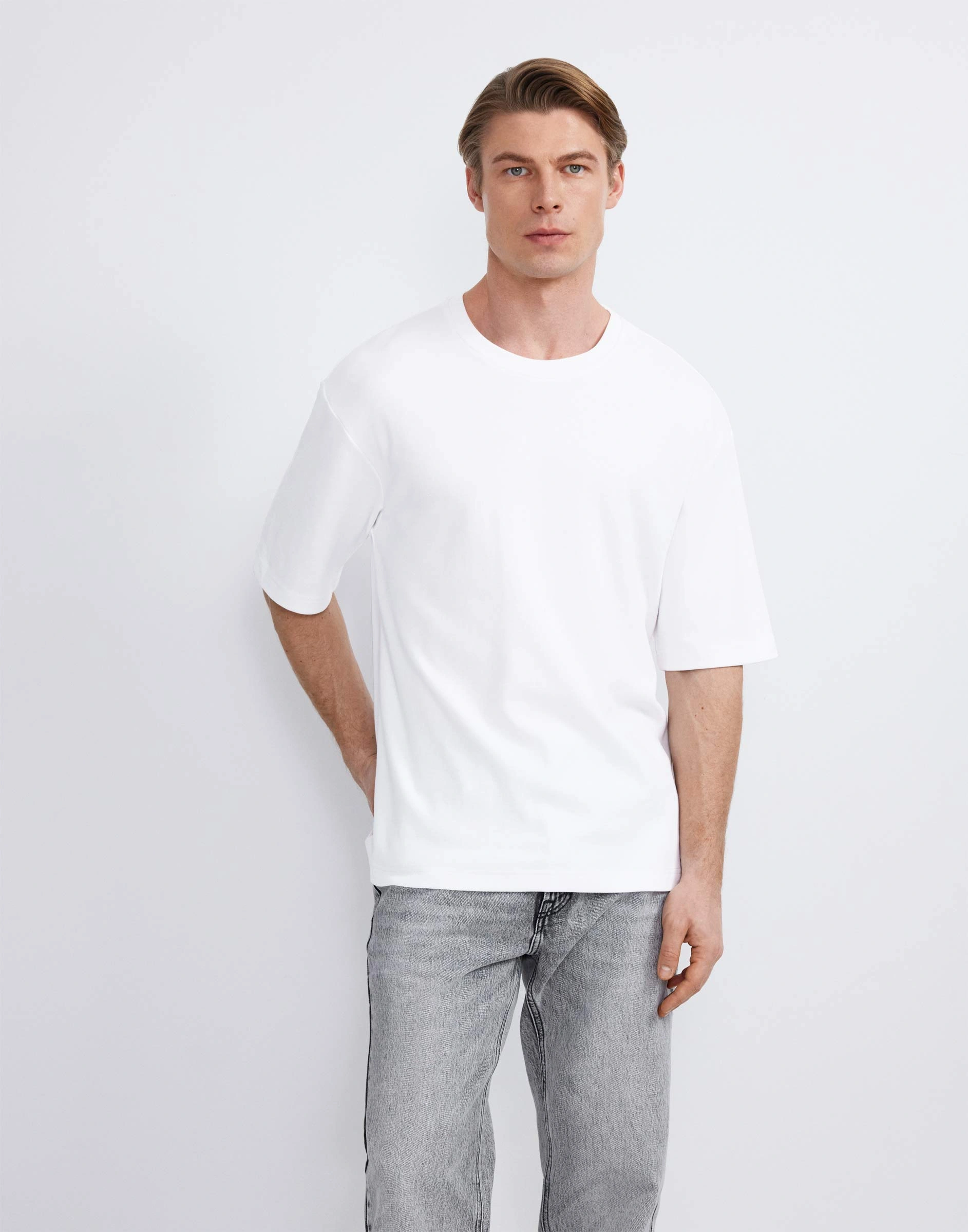 Белая базовая футболка Easy fit из плотного трикотажа Bkt015991-2