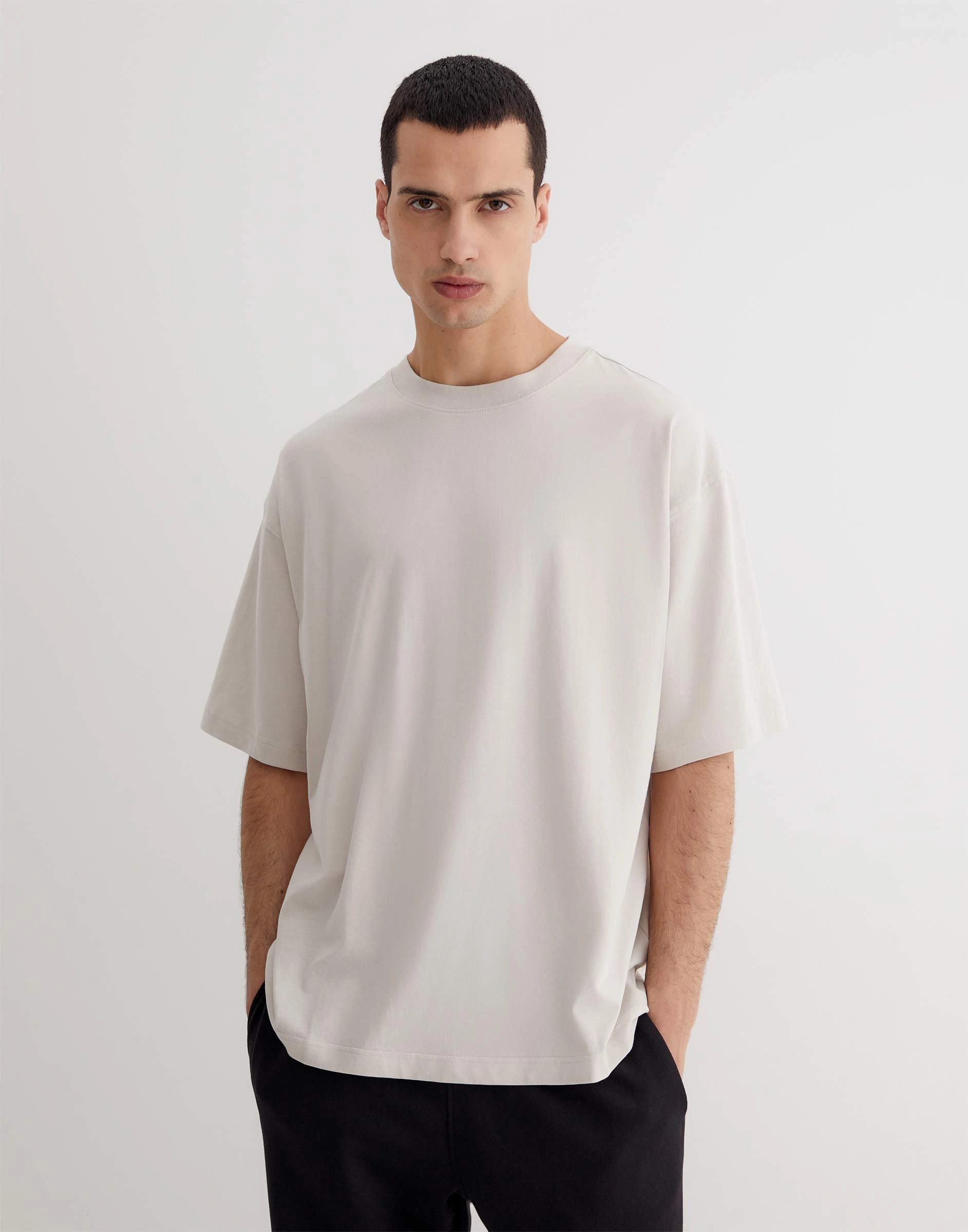 Светло-бежевая базовая футболка Relaxed из джерси Bkt016959-5