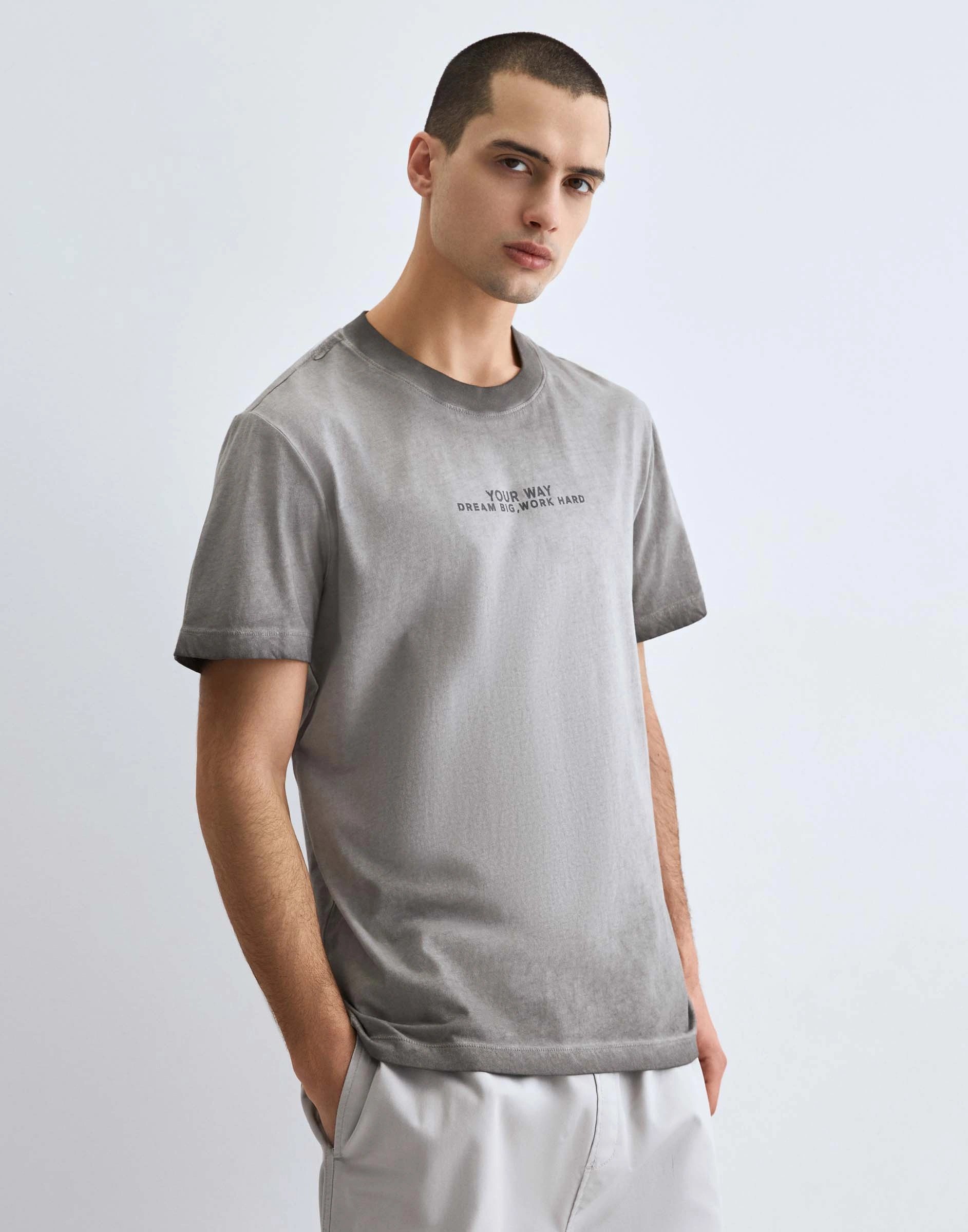 Серая футболка с винтажным эффектом и надписью Bkt016208-1