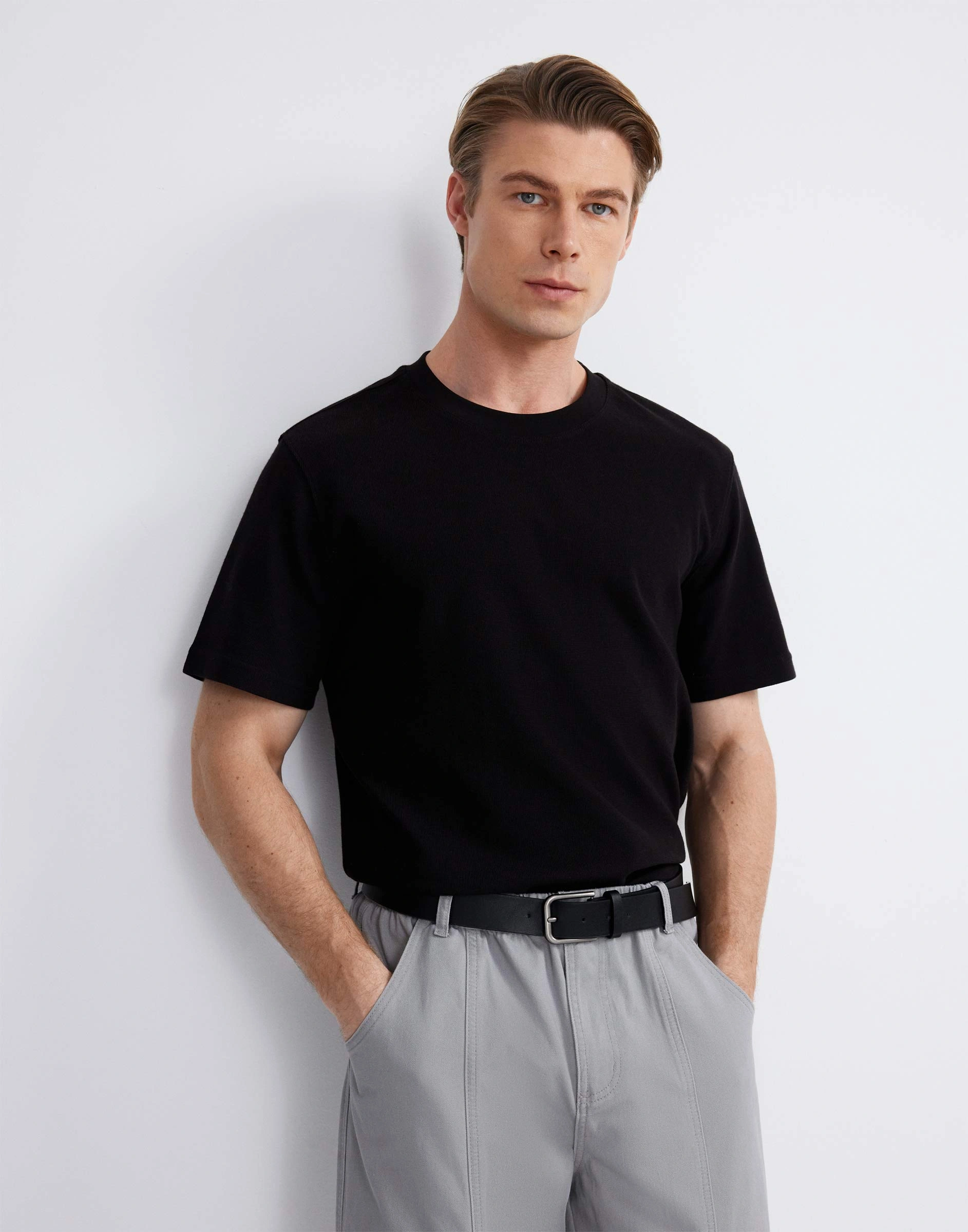 Чёрная базовая футболка New regular из фактурного трикотажа Bkt015743-1