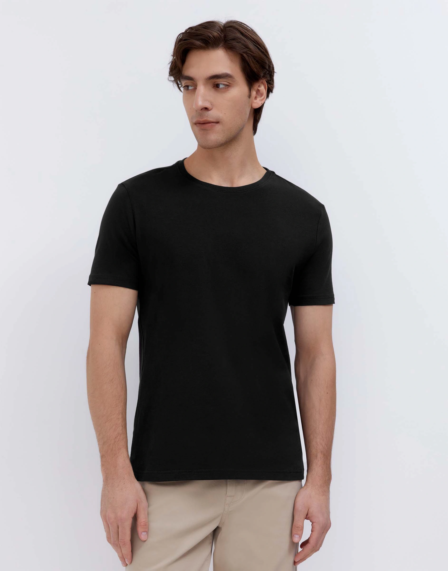 Чёрная базовая футболка Slim из тонкого джерси Bkt016044-2