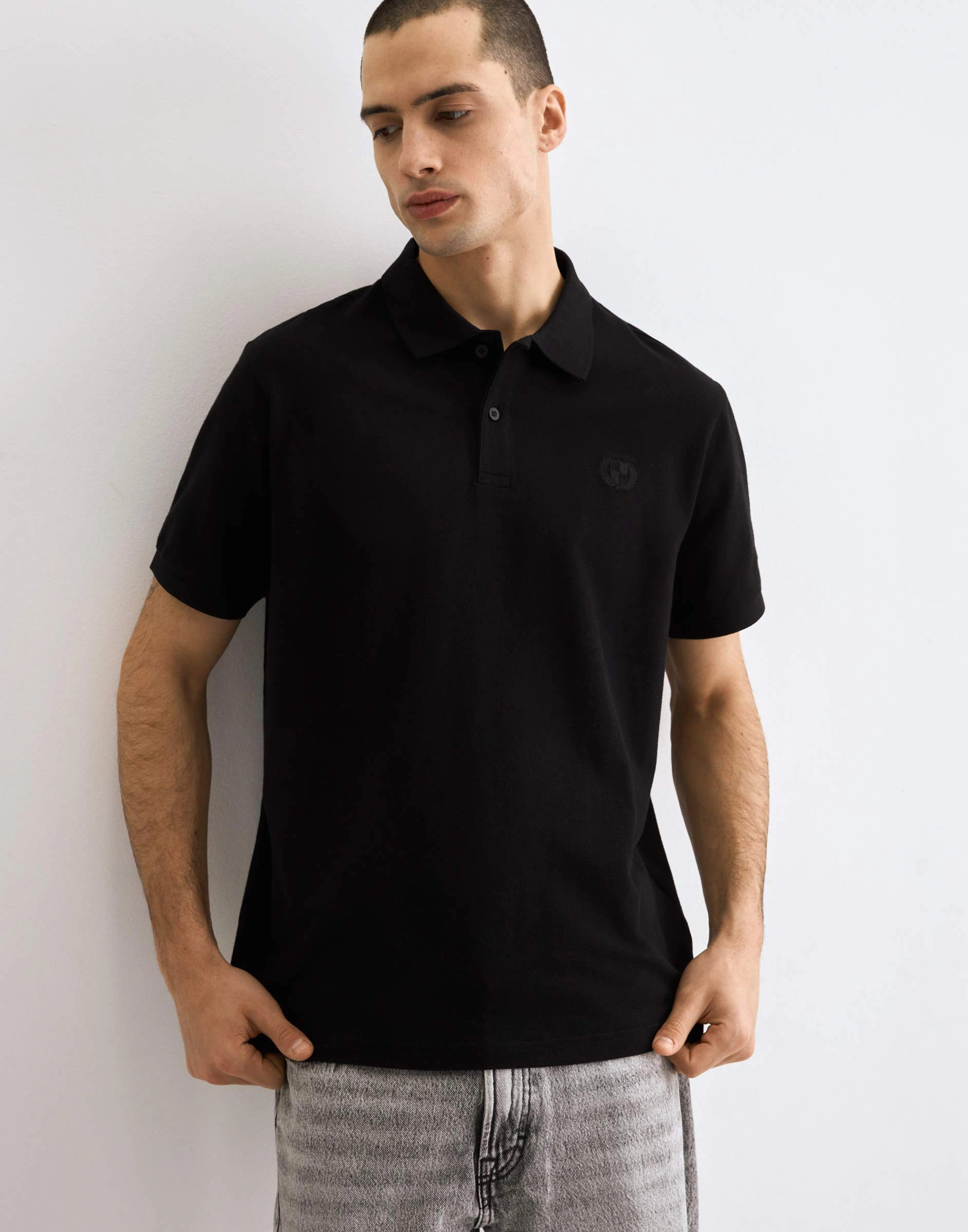 Чёрная футболка-поло с вышивкой Bkt017256-3