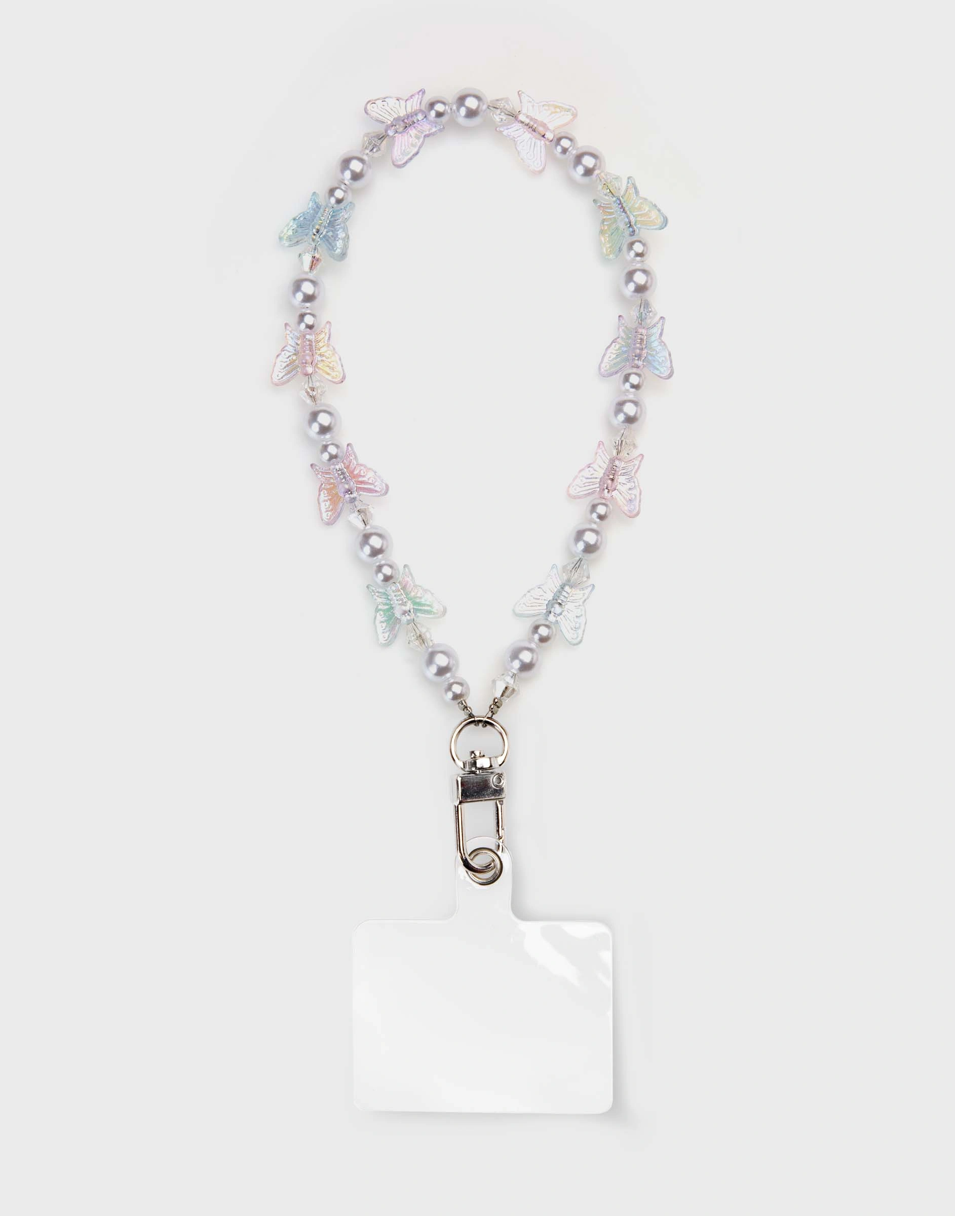 Белый брелок для телефона с бусинами и бабочками Gas016172-1