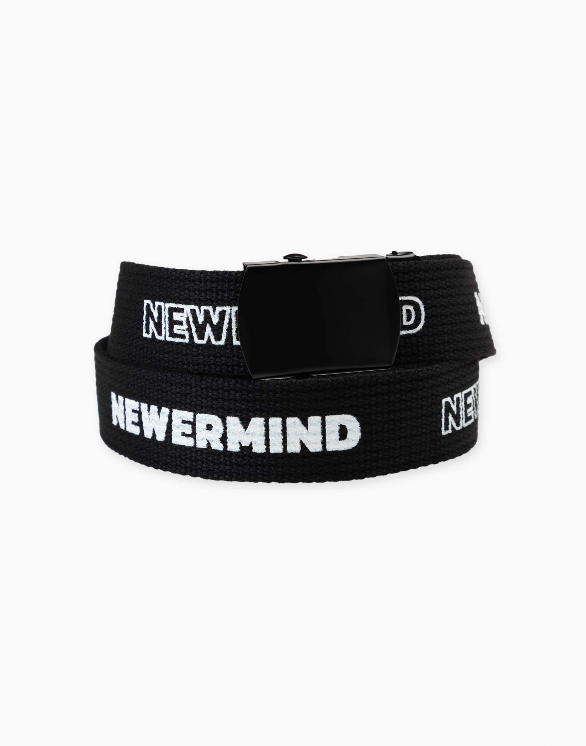 Чёрный ремень с металлической пряжкой и надписью Bas005658-1