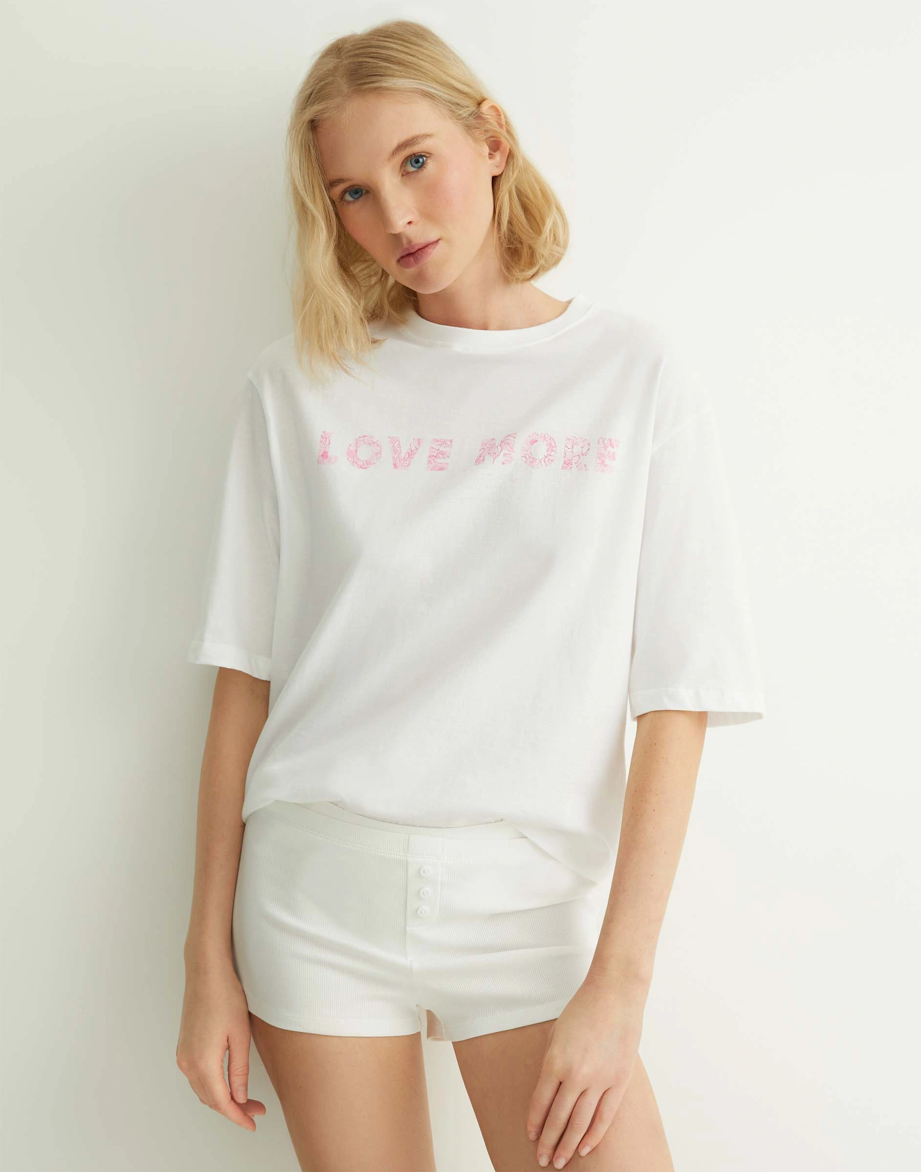 Белая пижамная футболка oversize с принтом Gsl002654-1