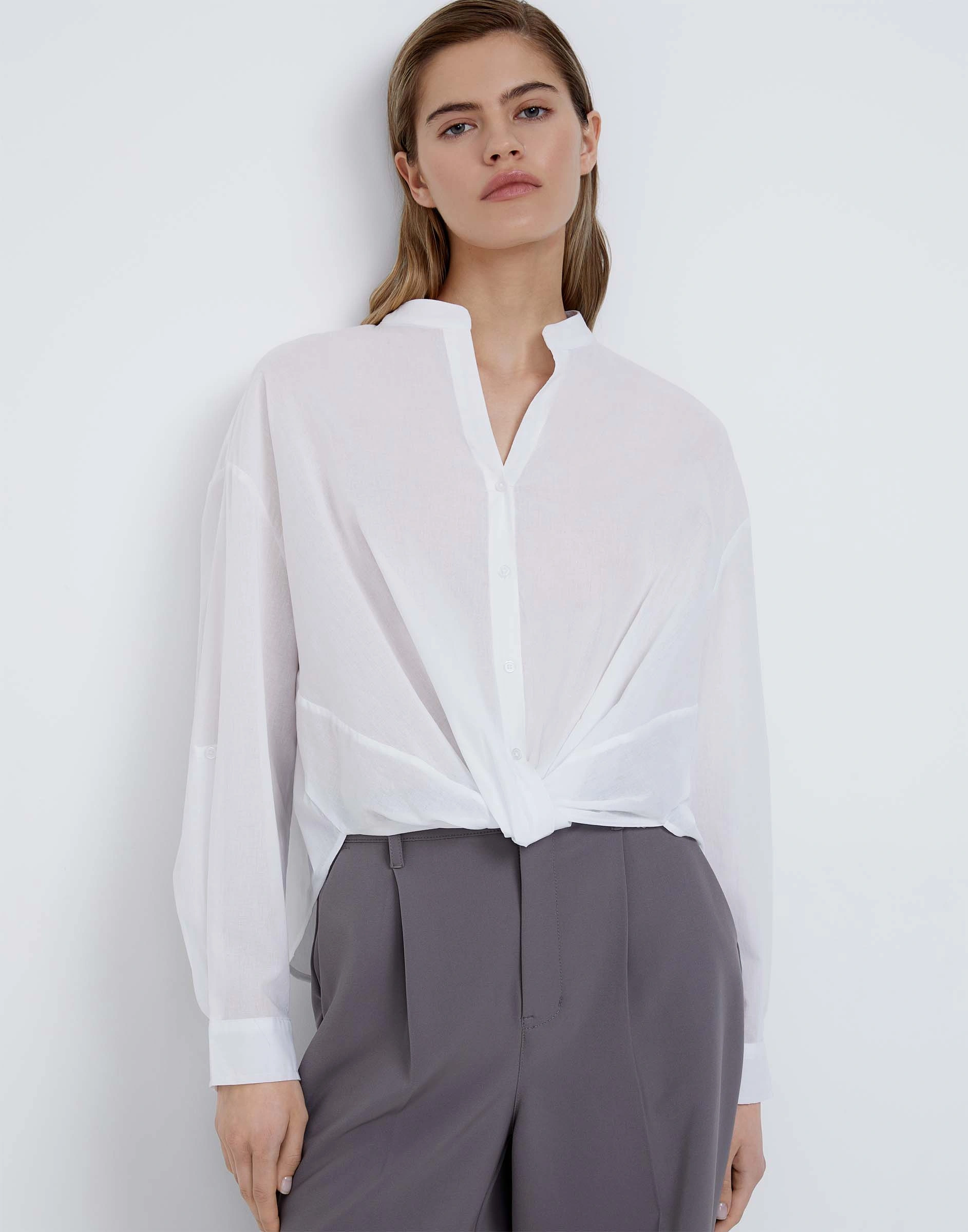 Белая рубашка oversize с воротником мао Gwt004704-3