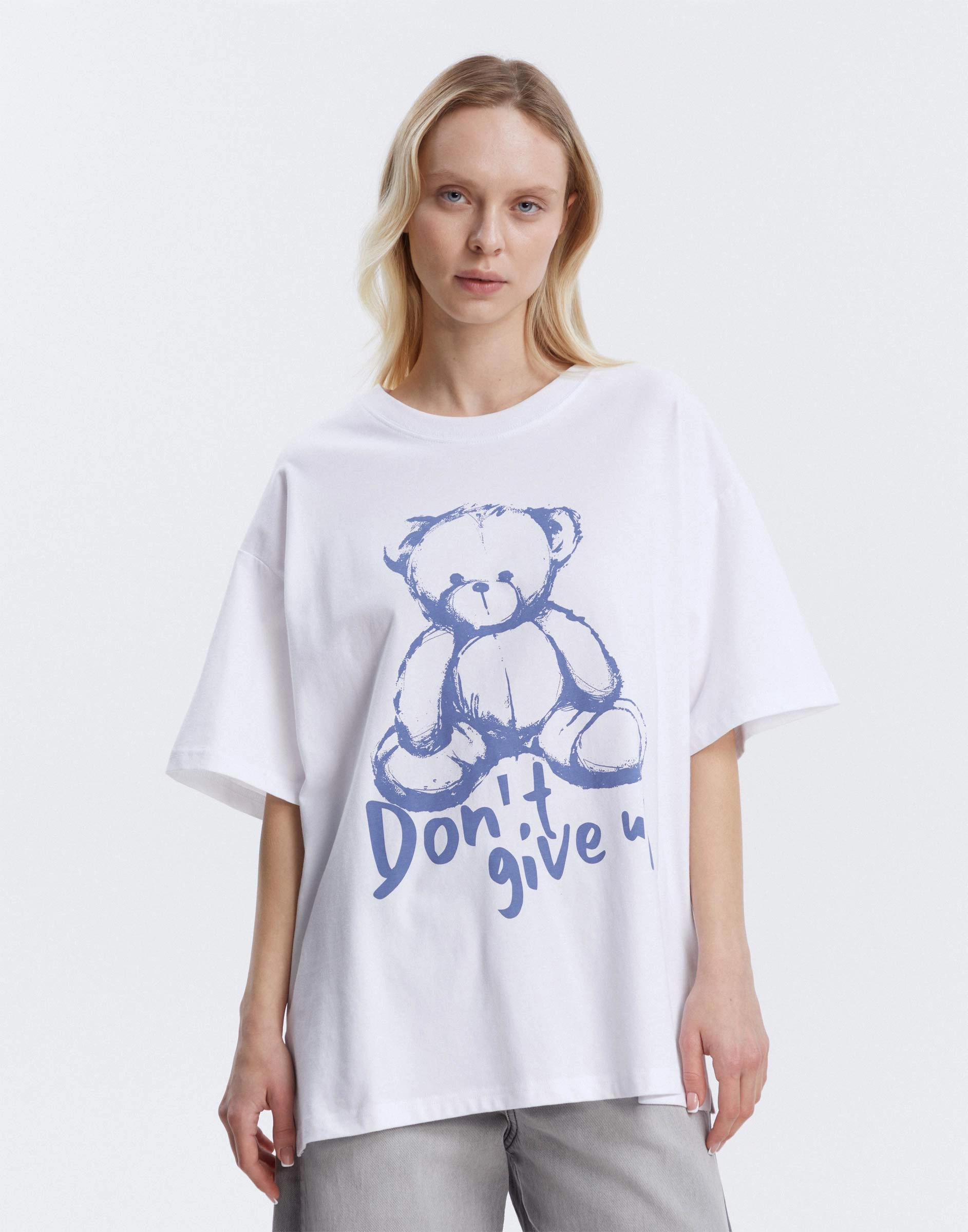 Белая удлинённая футболка oversize с принтом Gkt026632-1