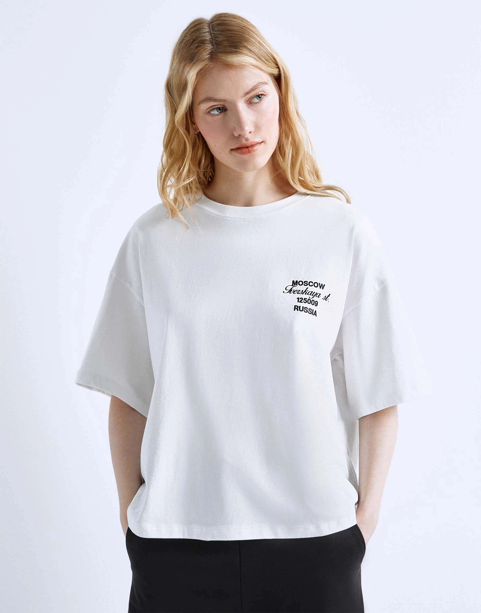 Белая футболка oversize с названием города Moscow Gkt026806-1