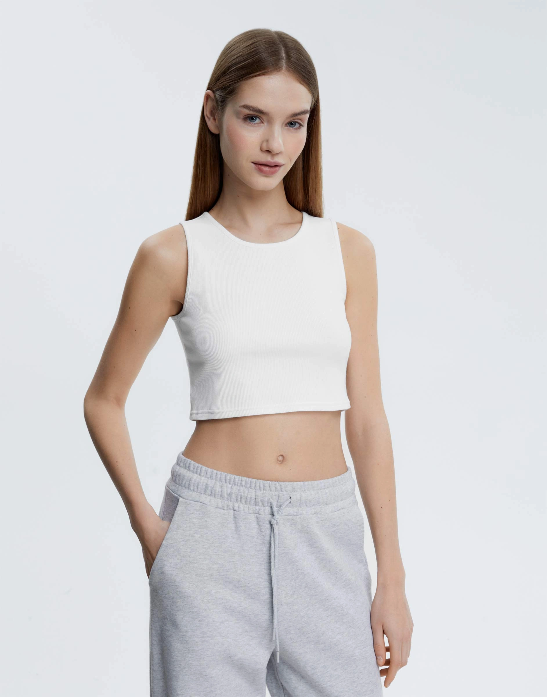 Белый базовый кроп-топ в рубчик Gtn004576-3