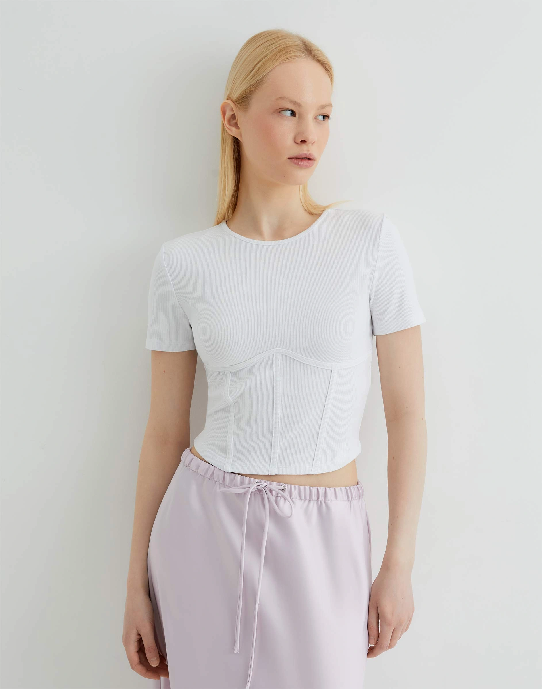 Белый кроп-топ с фактурными швами Gkt027078-2