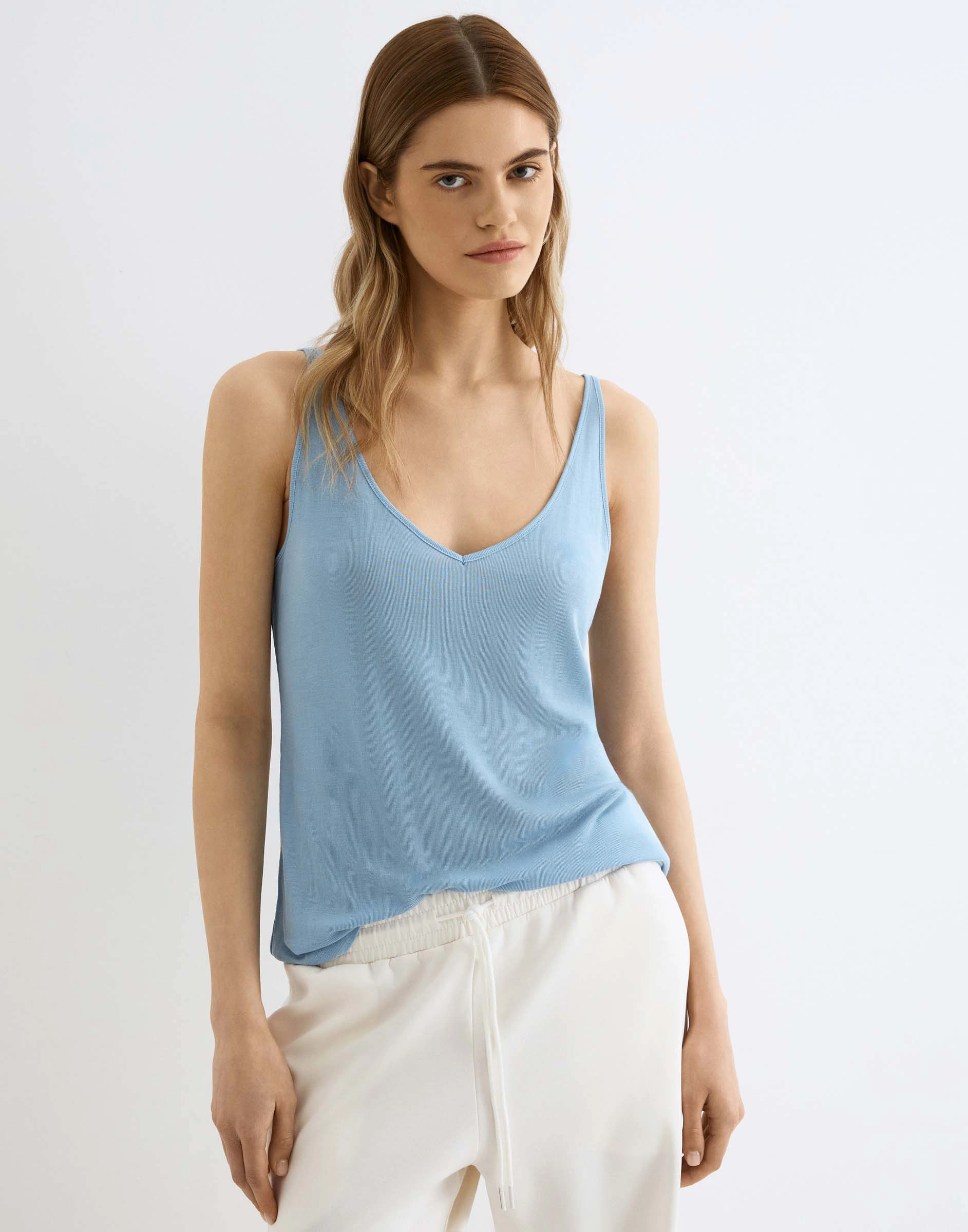 Голубая майка в рубчик с V-вырезом Gtn004379-1