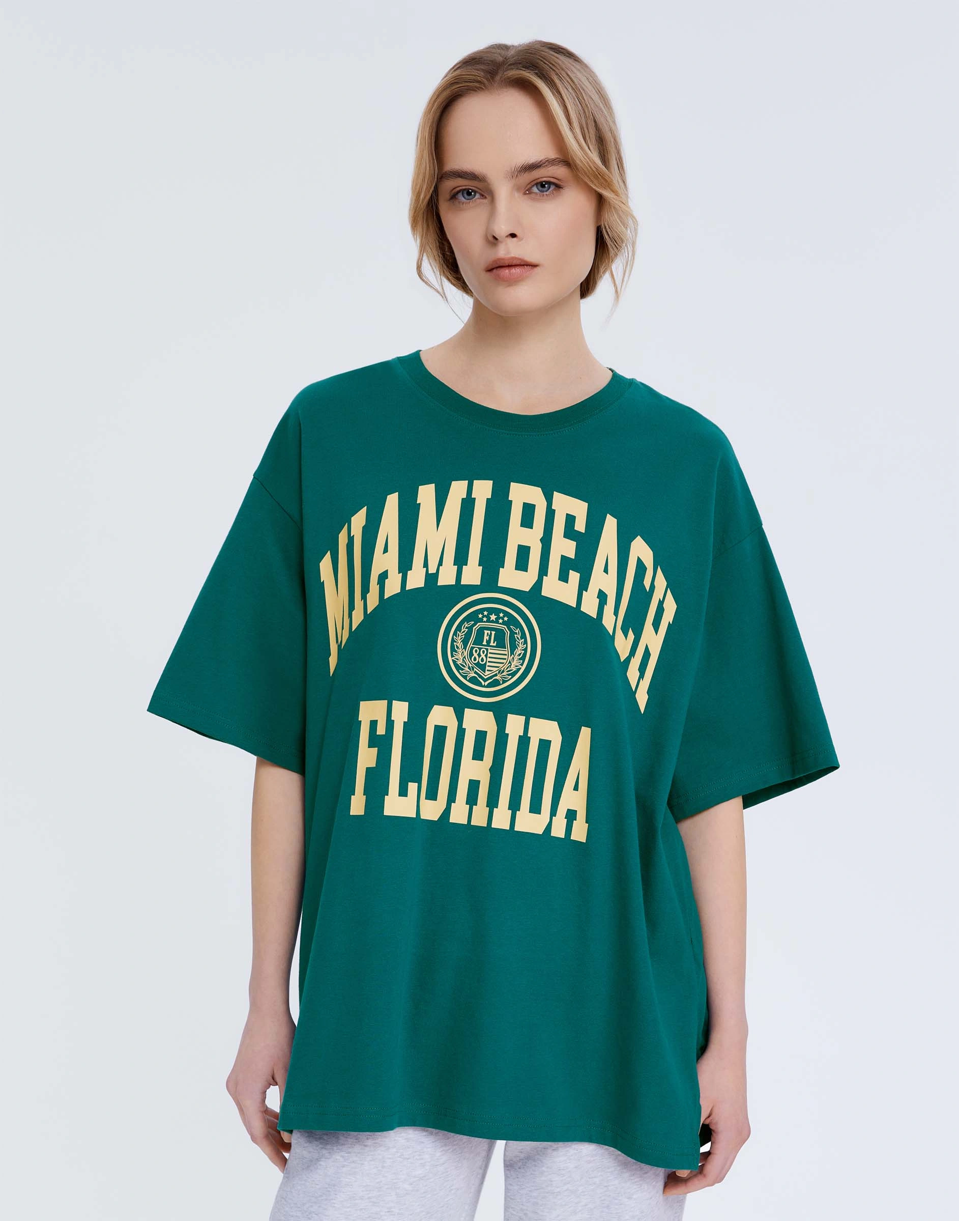 Зелёная футболка oversize с колледж-принтом Gkt026503-1