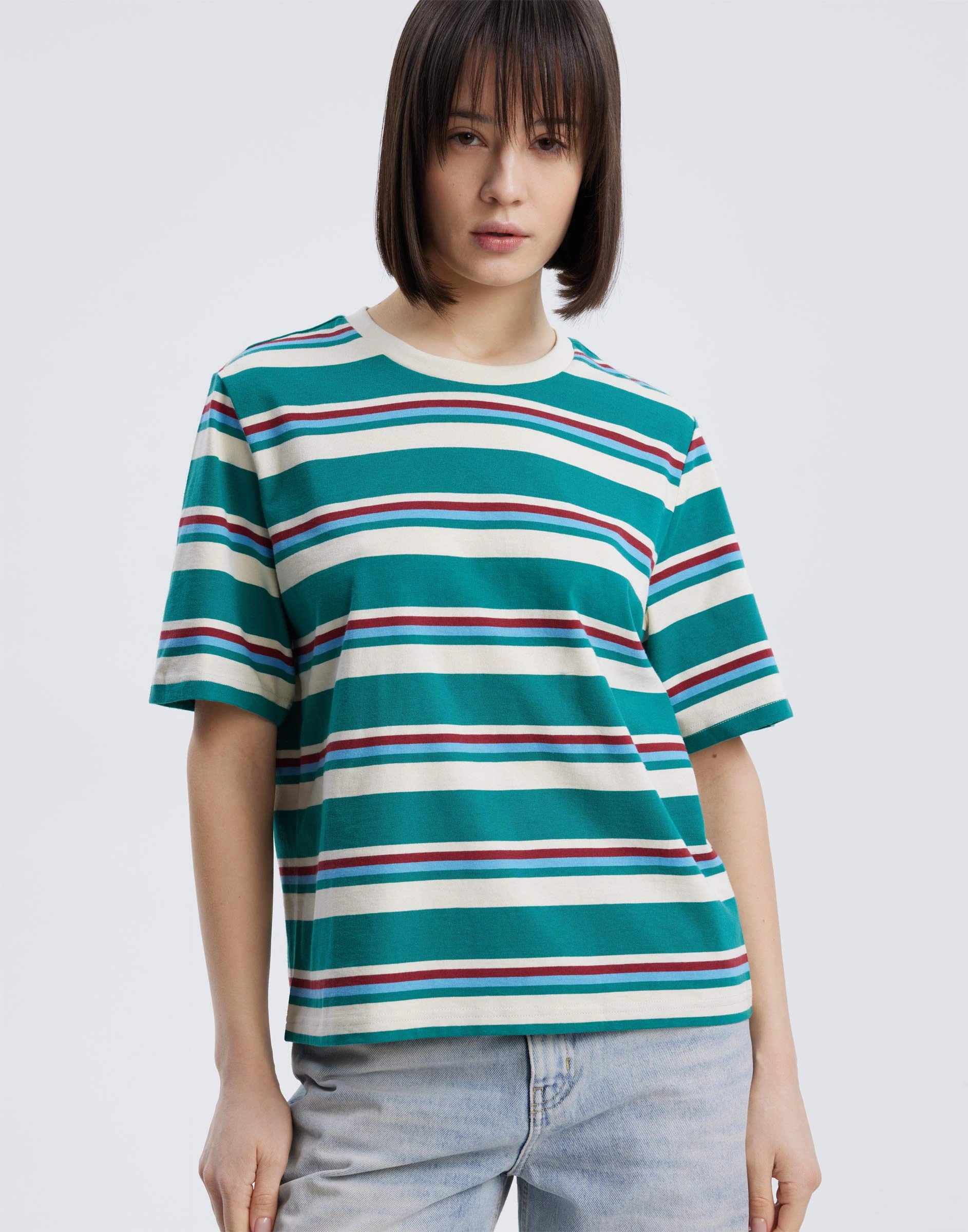 Зелёная футболка в полоску Gkt026348-1
