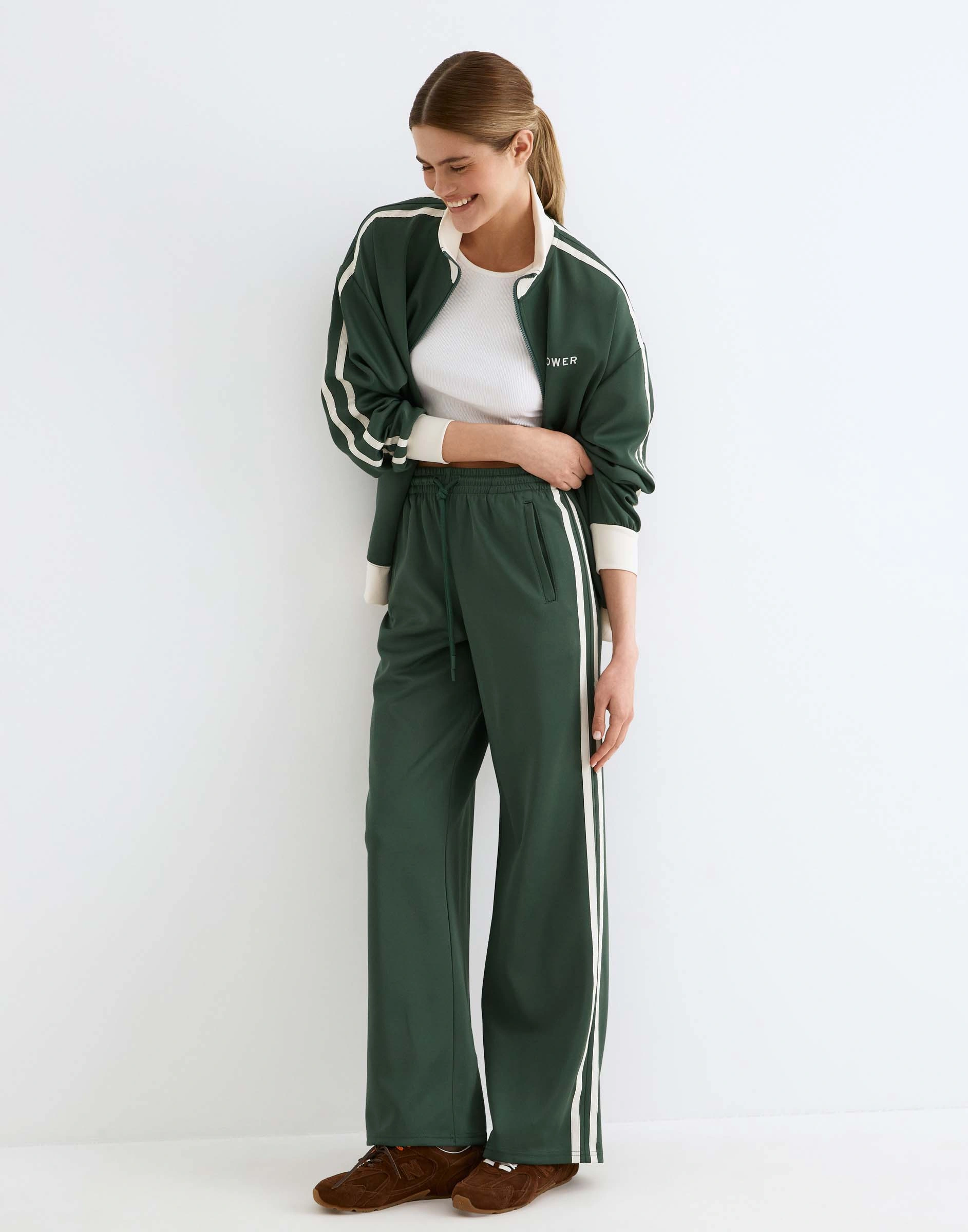 Зелёные спортивные брюки Straight из скубы с лампасами Gac024166-1