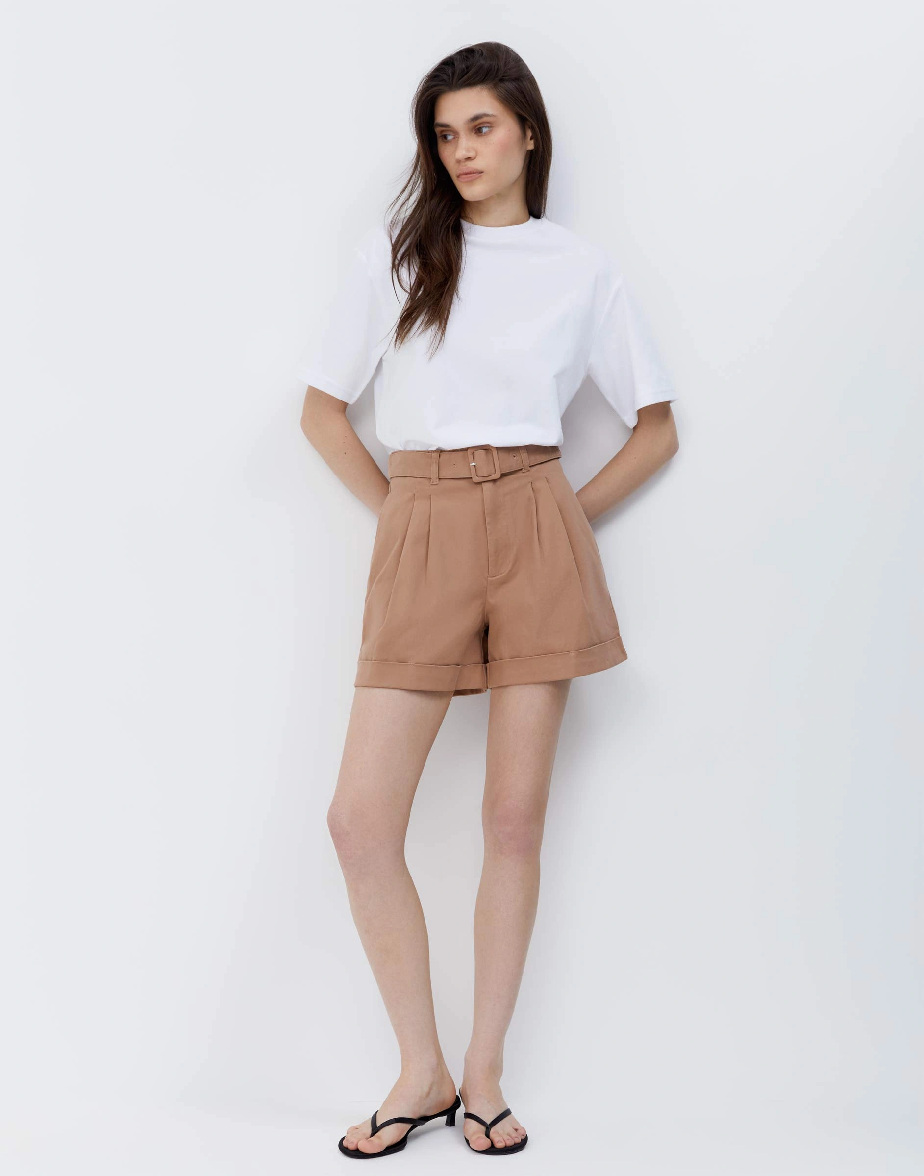 Карамельные шорты Baggy из твила с эластичным поясом Gsh012730-1