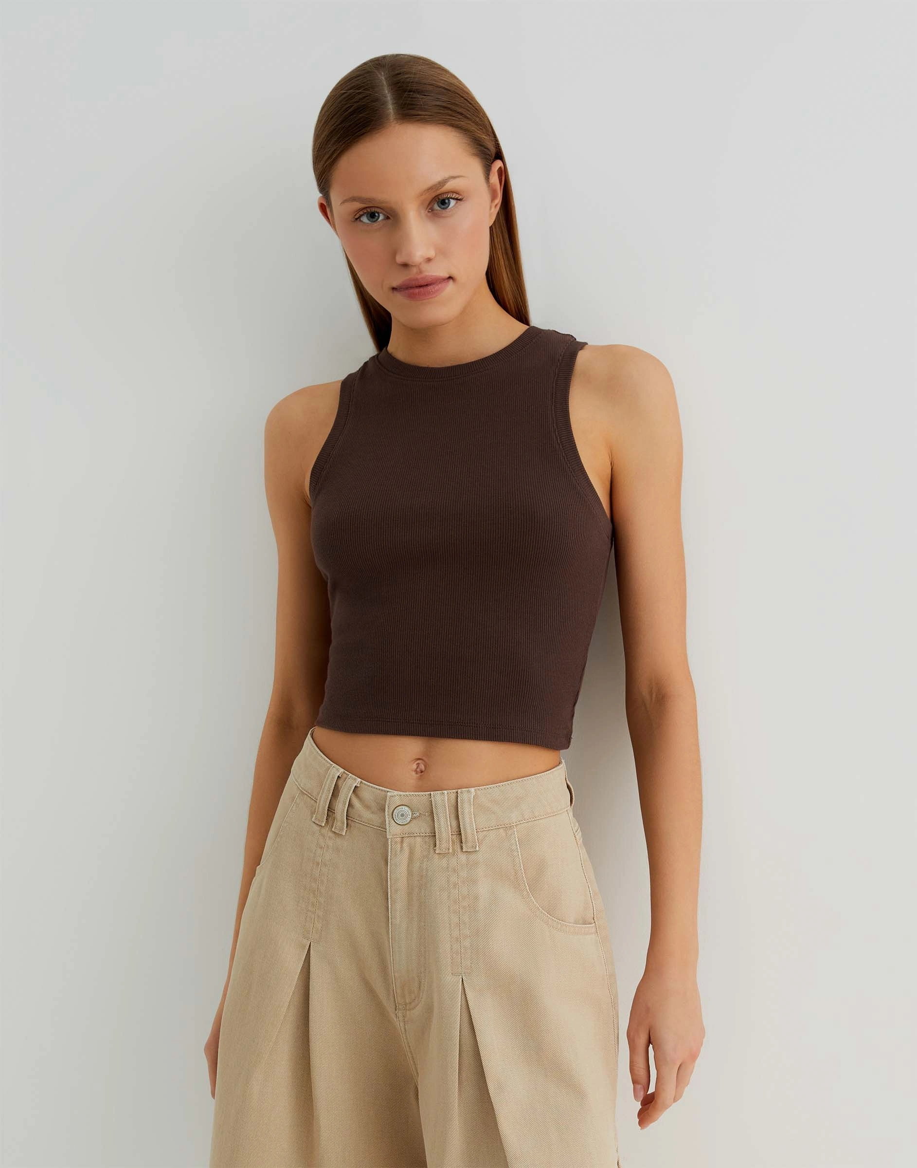 Коричневый кроп-топ в рубчик Gtn004571-5