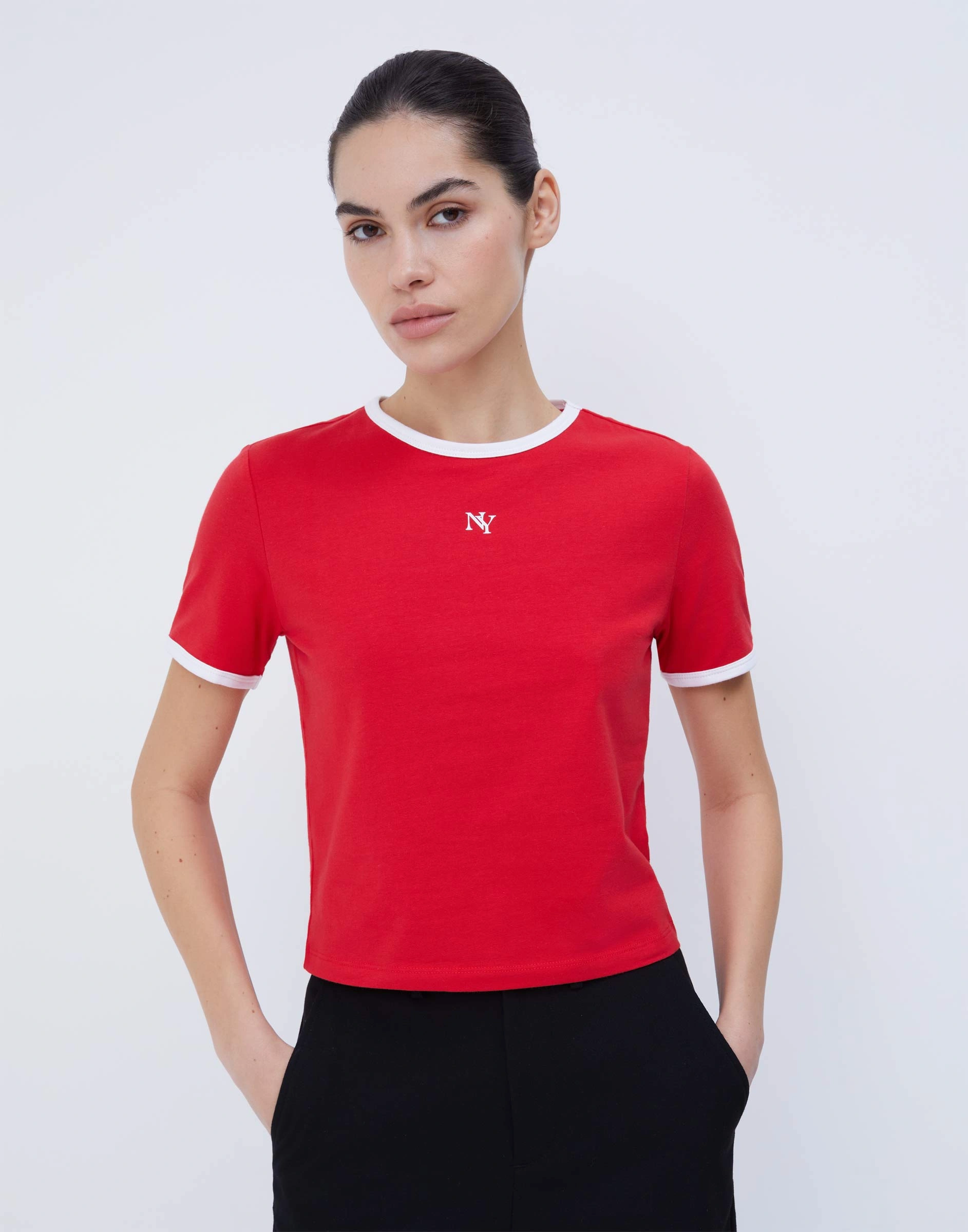 Красный кроп-топ с принтом Gkt026602-1