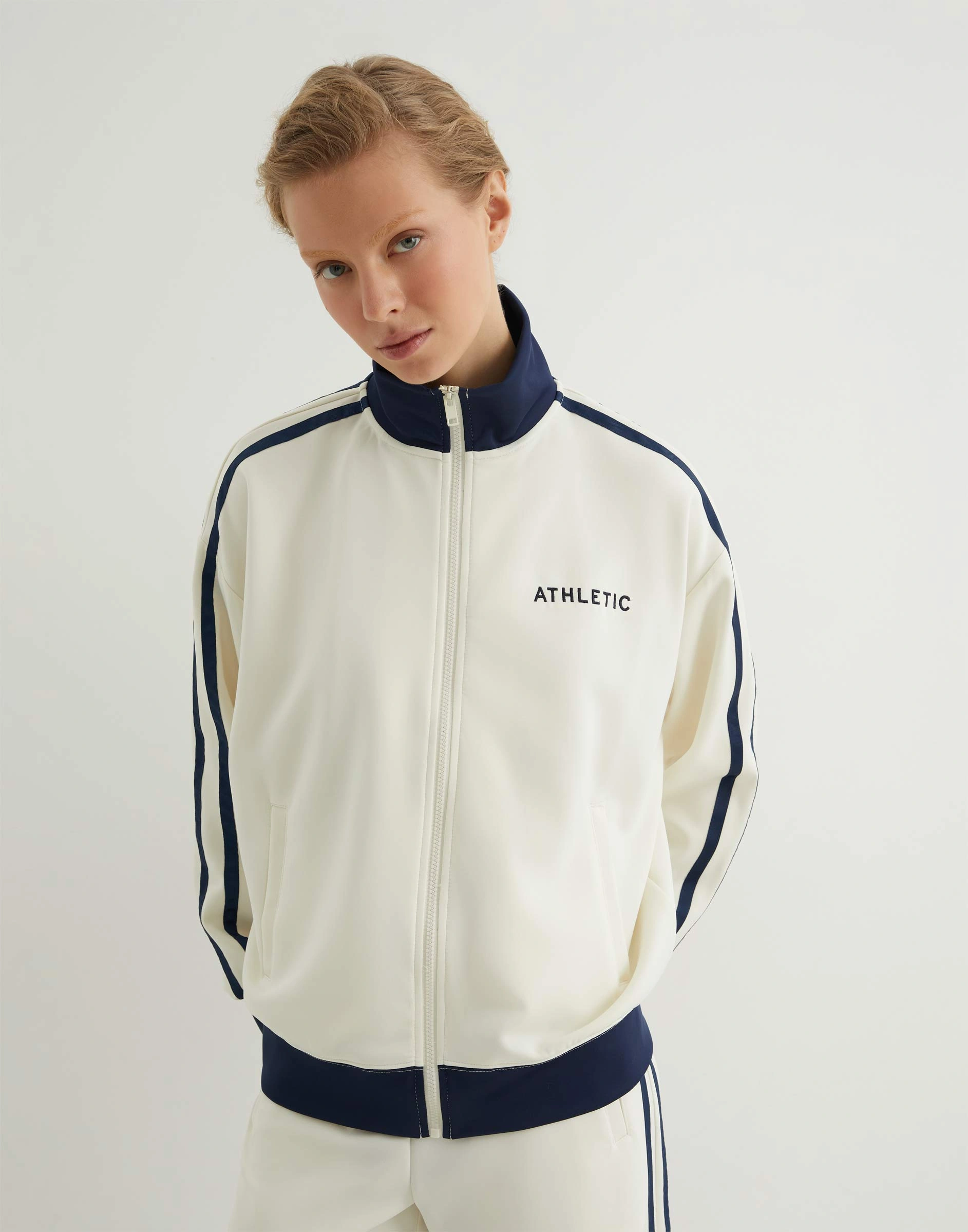 Молочный бомбер superoversize из скубы с вышивкой и лампасами Gac024165-2