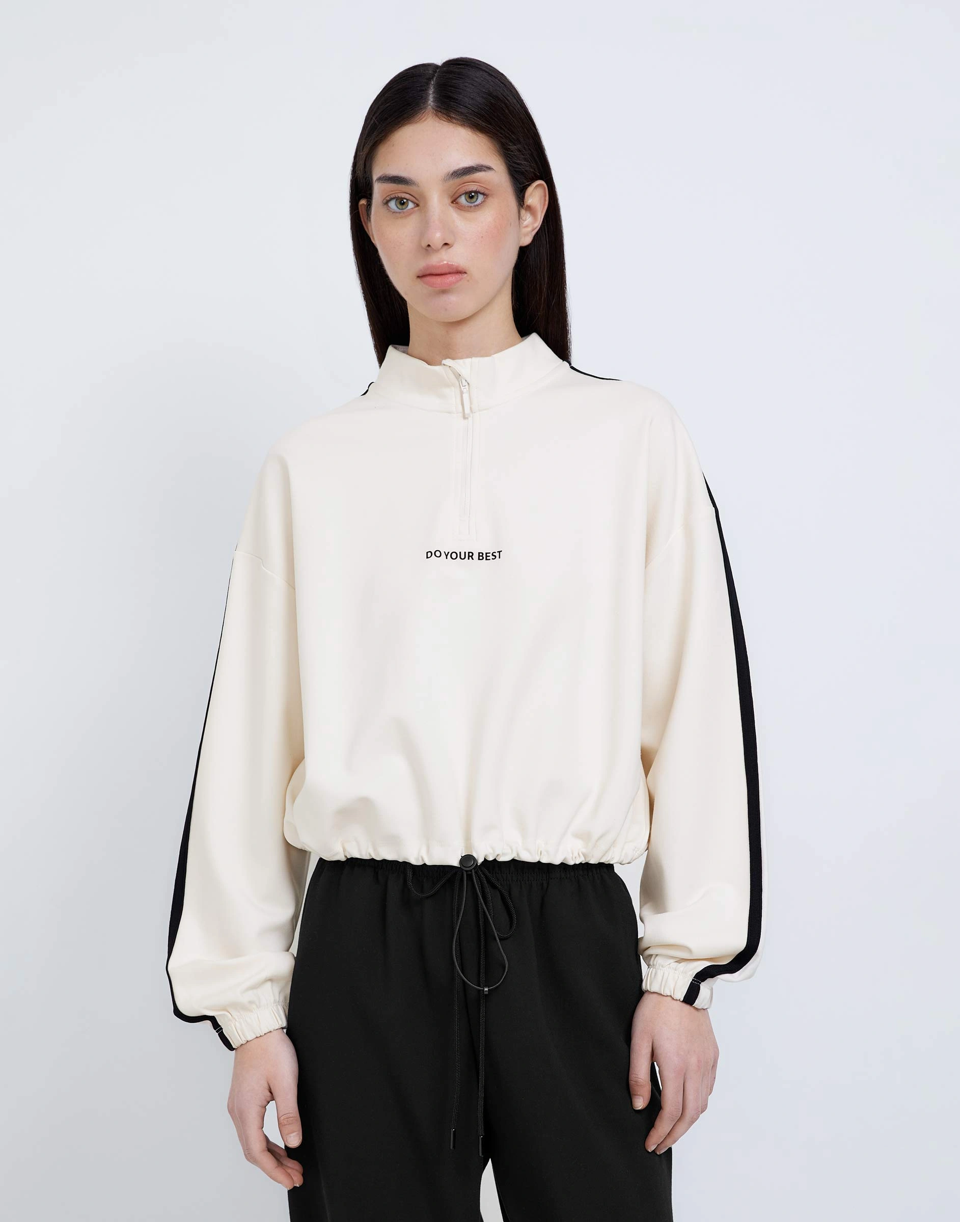 Молочный спортивный укороченный свитшот oversize Grt000709-2