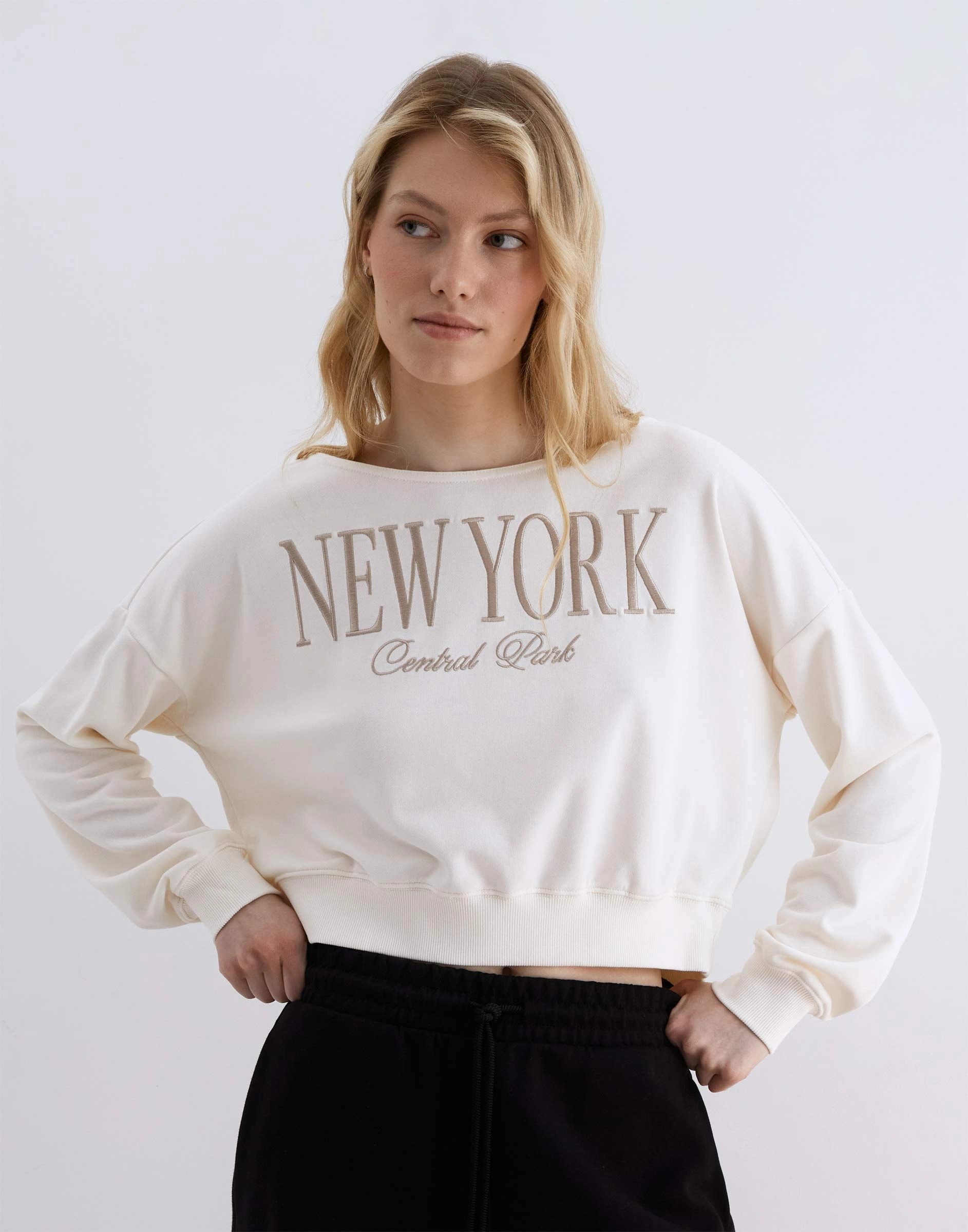 Молочный укороченный свитшот oversize с вышивкой Gac024598-1