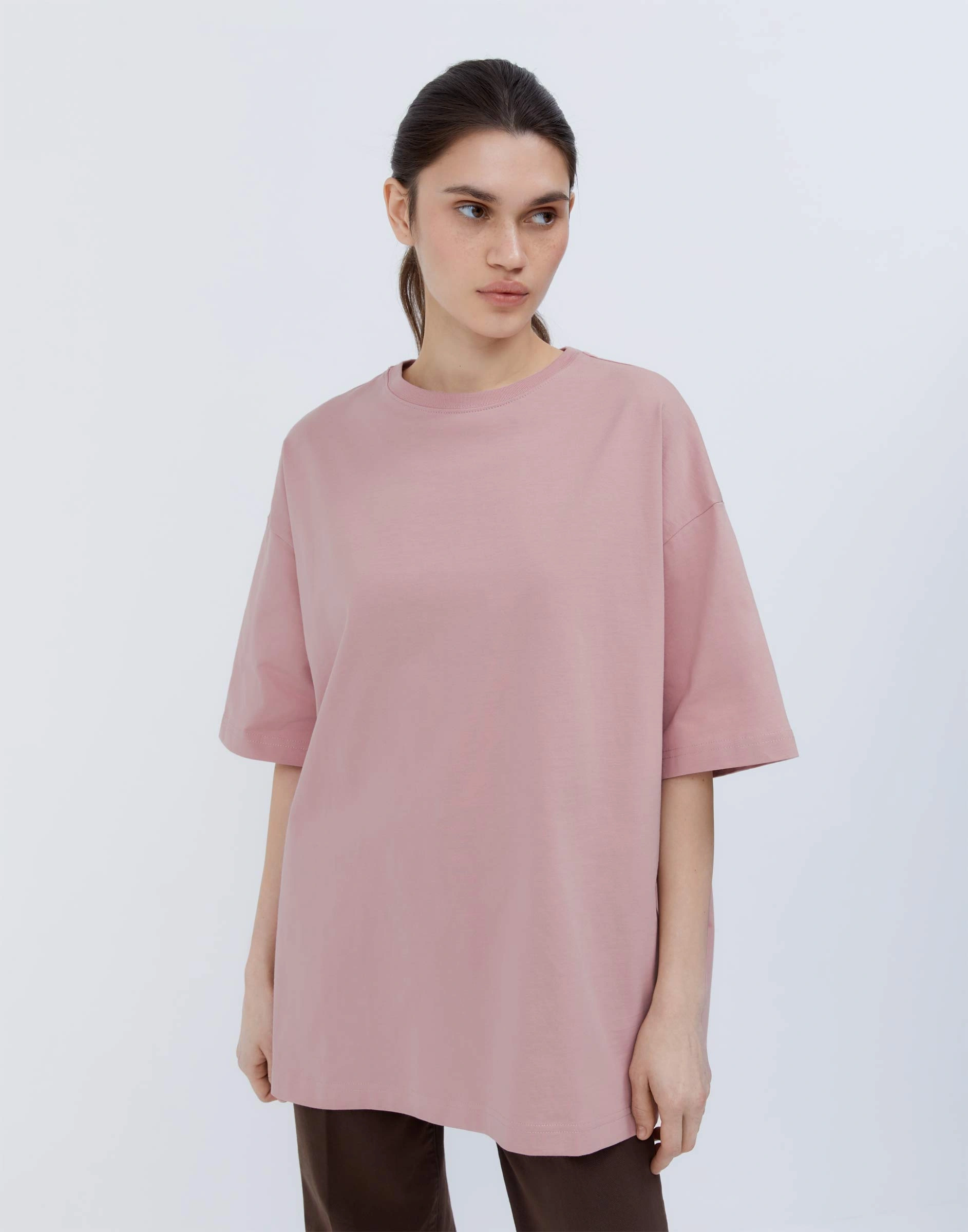 Пыльно-розовая базовая футболка oversize из плотного джерси Gkt027032-3