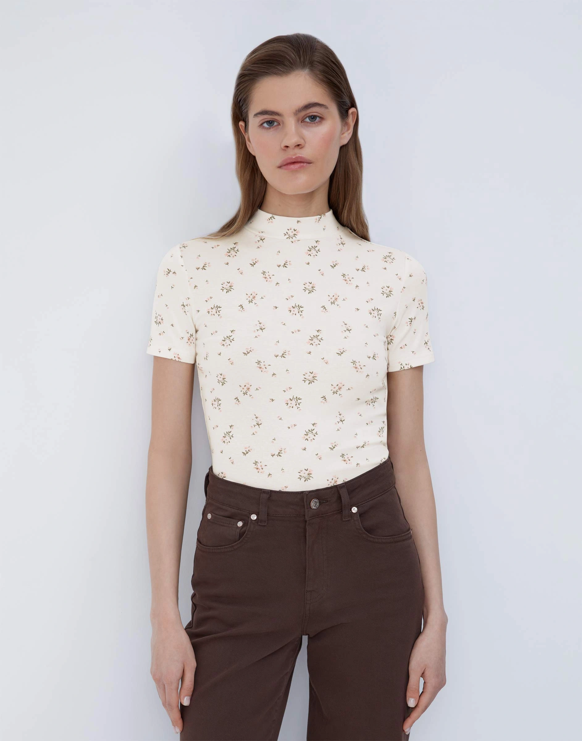 Розовый кроп-топ с воротником-стойкой и принтом Gkt026845-3