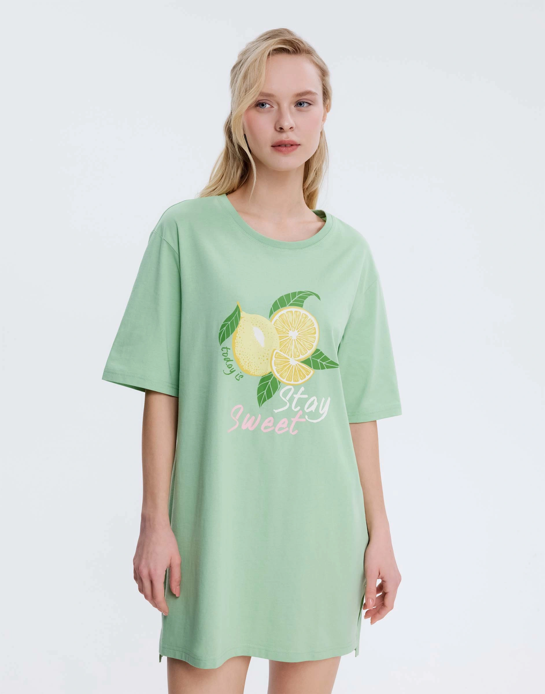 Салатовая ночная сорочка с принтом Gsl002639-1
