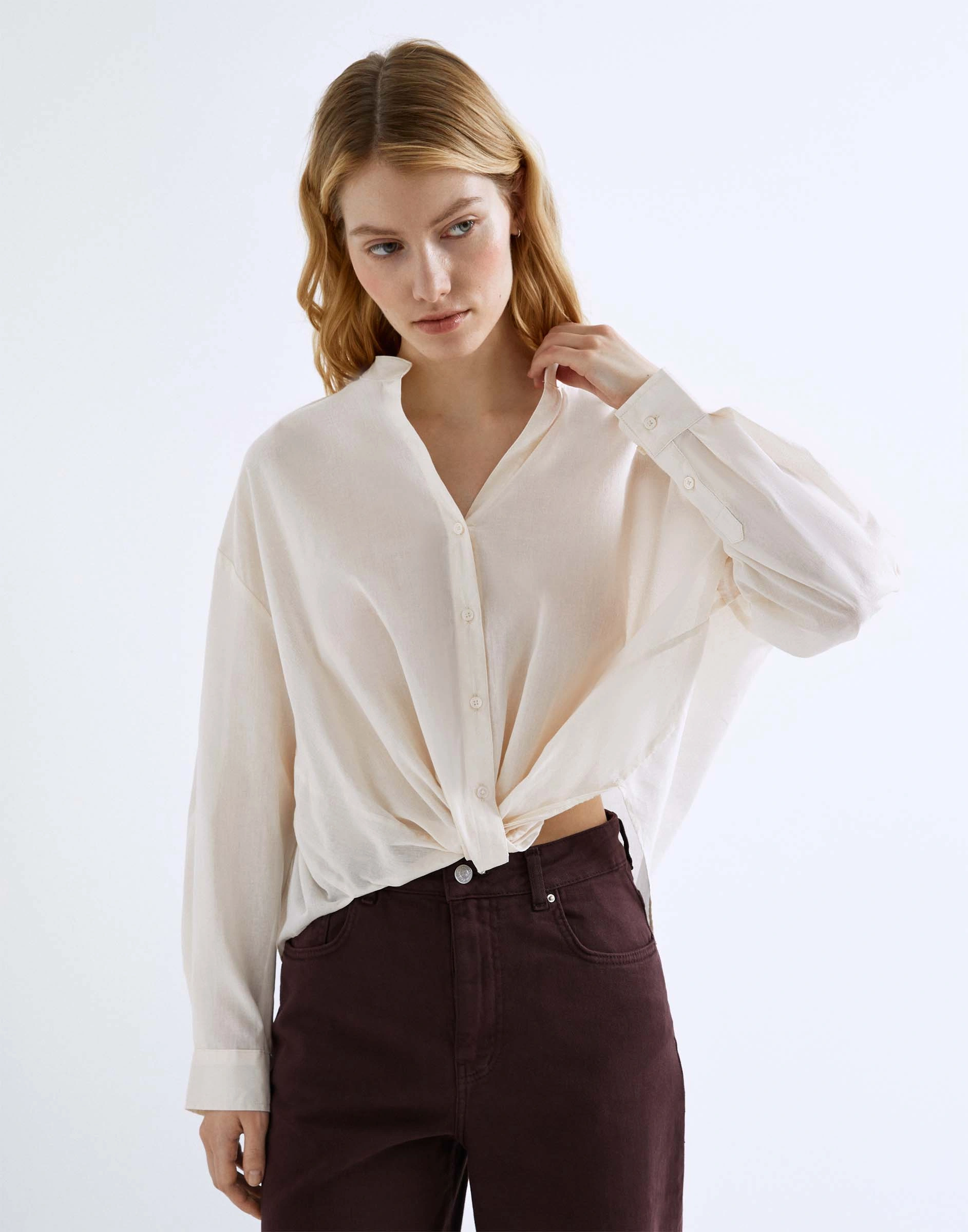 Светло-бежевая рубашка oversize с воротником мао Gwt004704-2