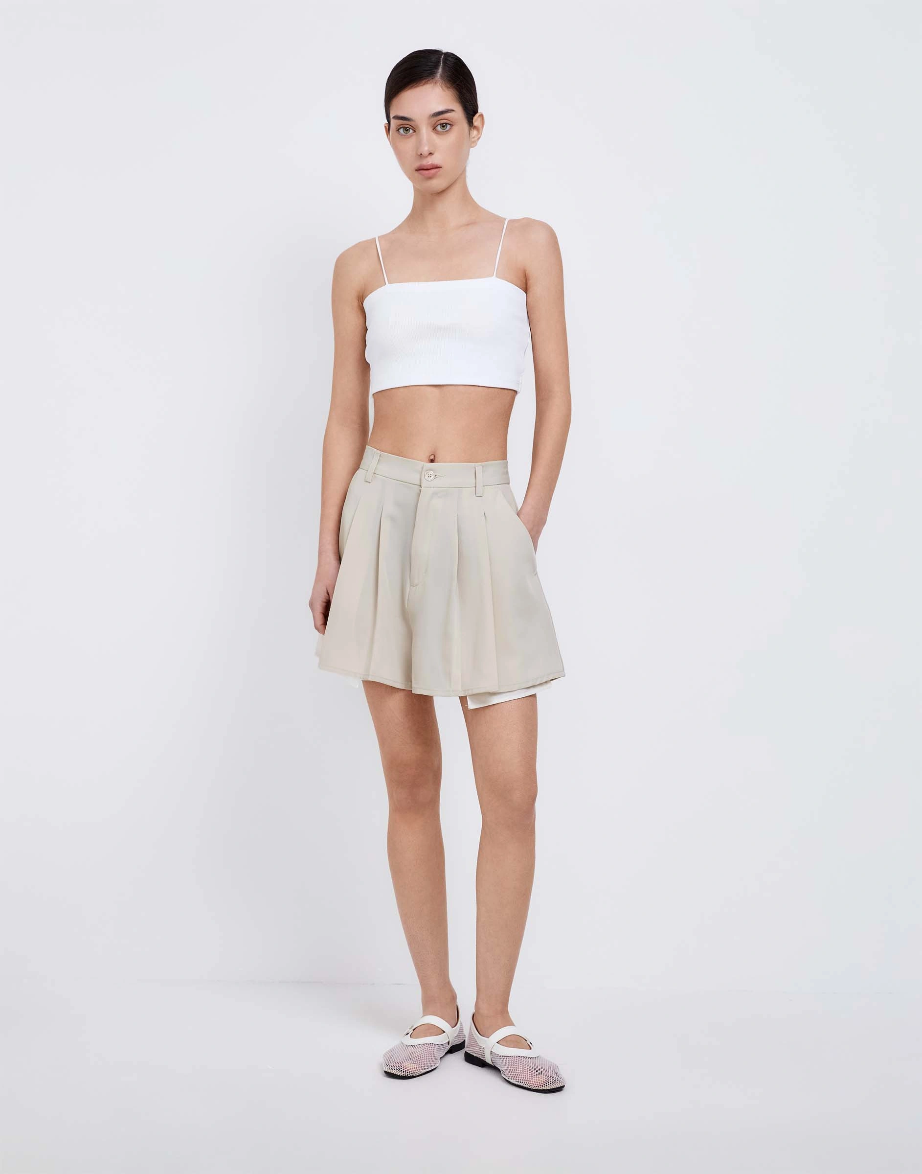 Светло-бежевые короткие шорты со складками Gsh012582-1