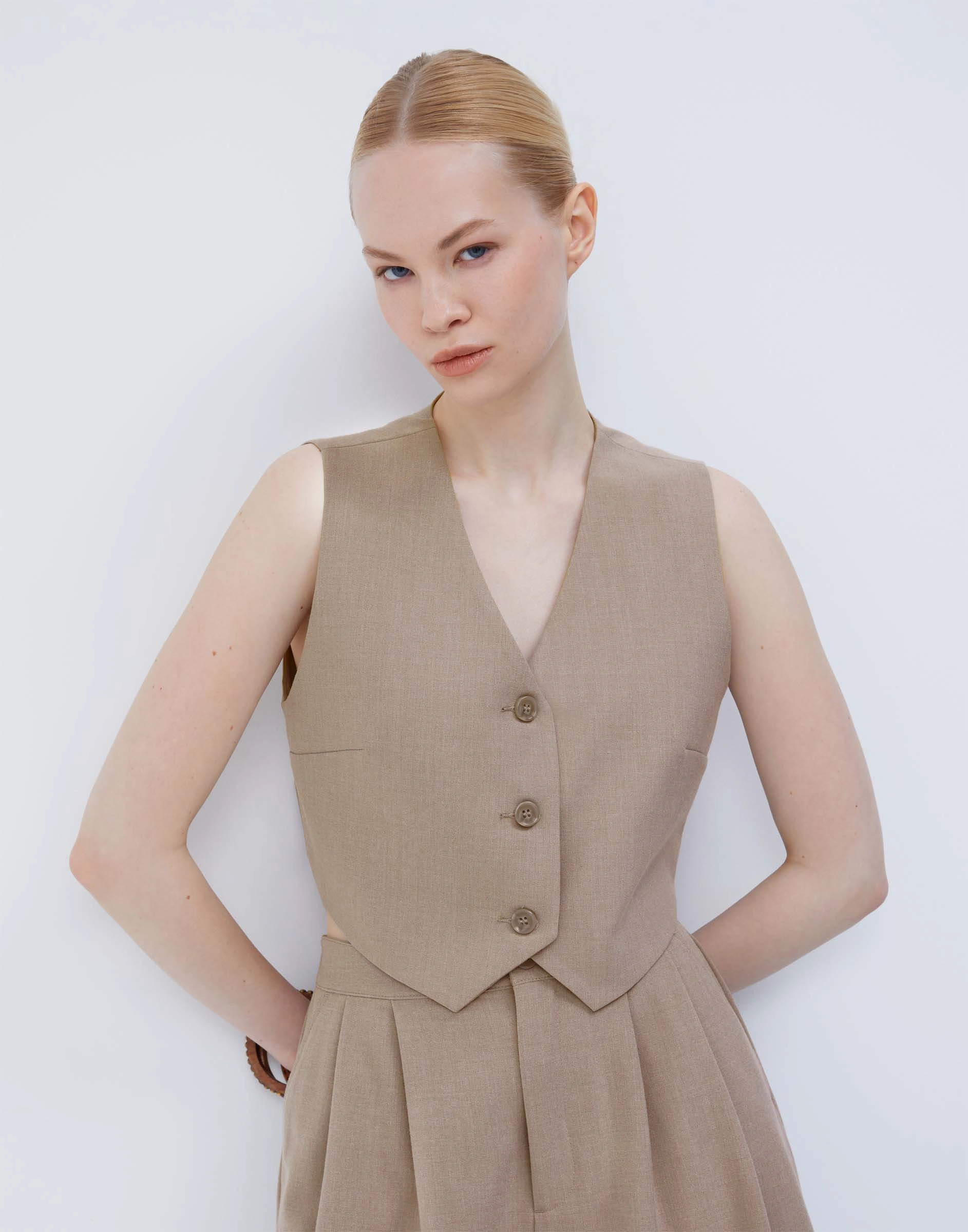 Светло-бежевый укороченный жилет Gjc006835-2