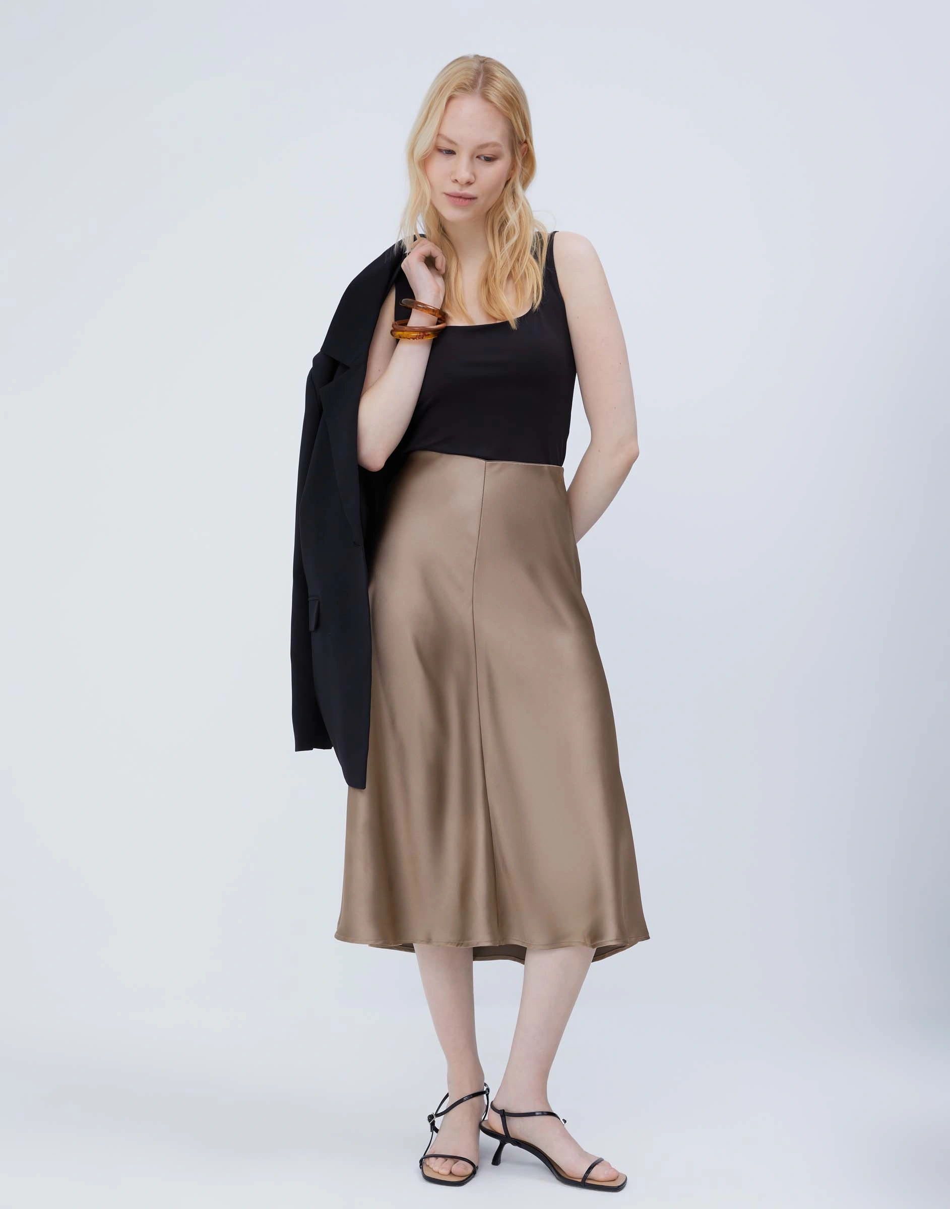 Светло-коричневая расклёшенная юбка макси из сатина Gsk019529-2