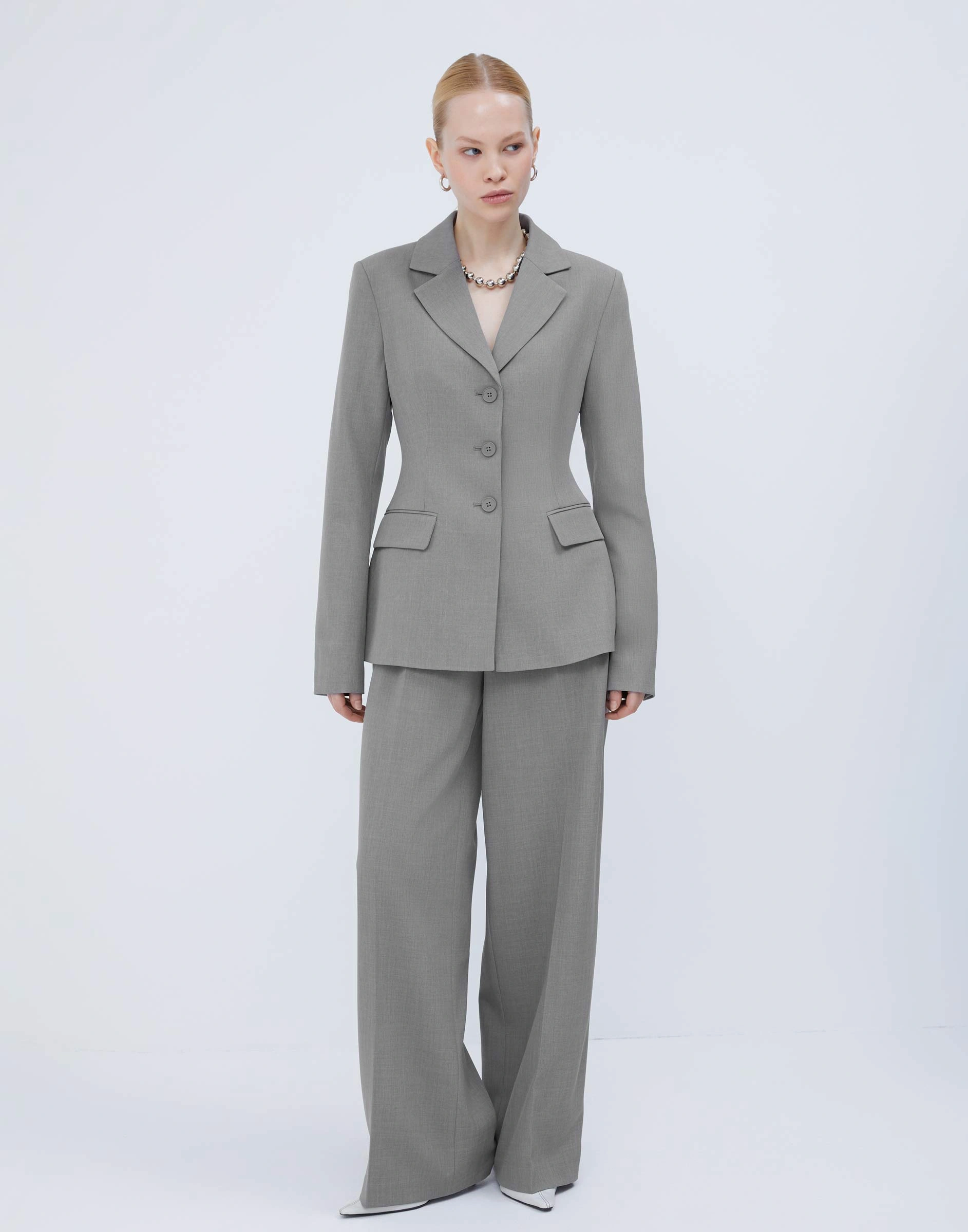 Серые брюки Wide leg с высокой посадкой Gpt010684-2