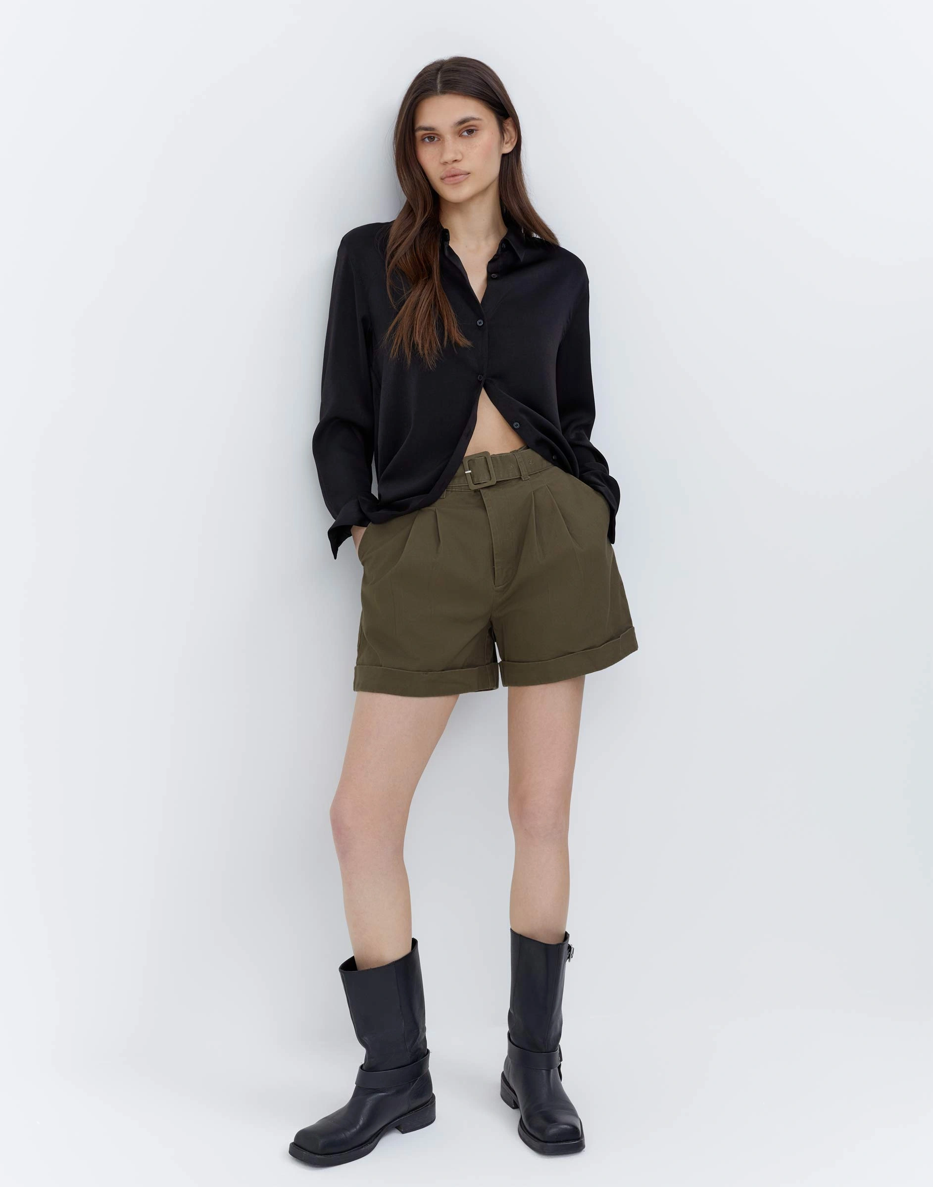 Хаки шорты Baggy из твила на резинке Gsh012730-2