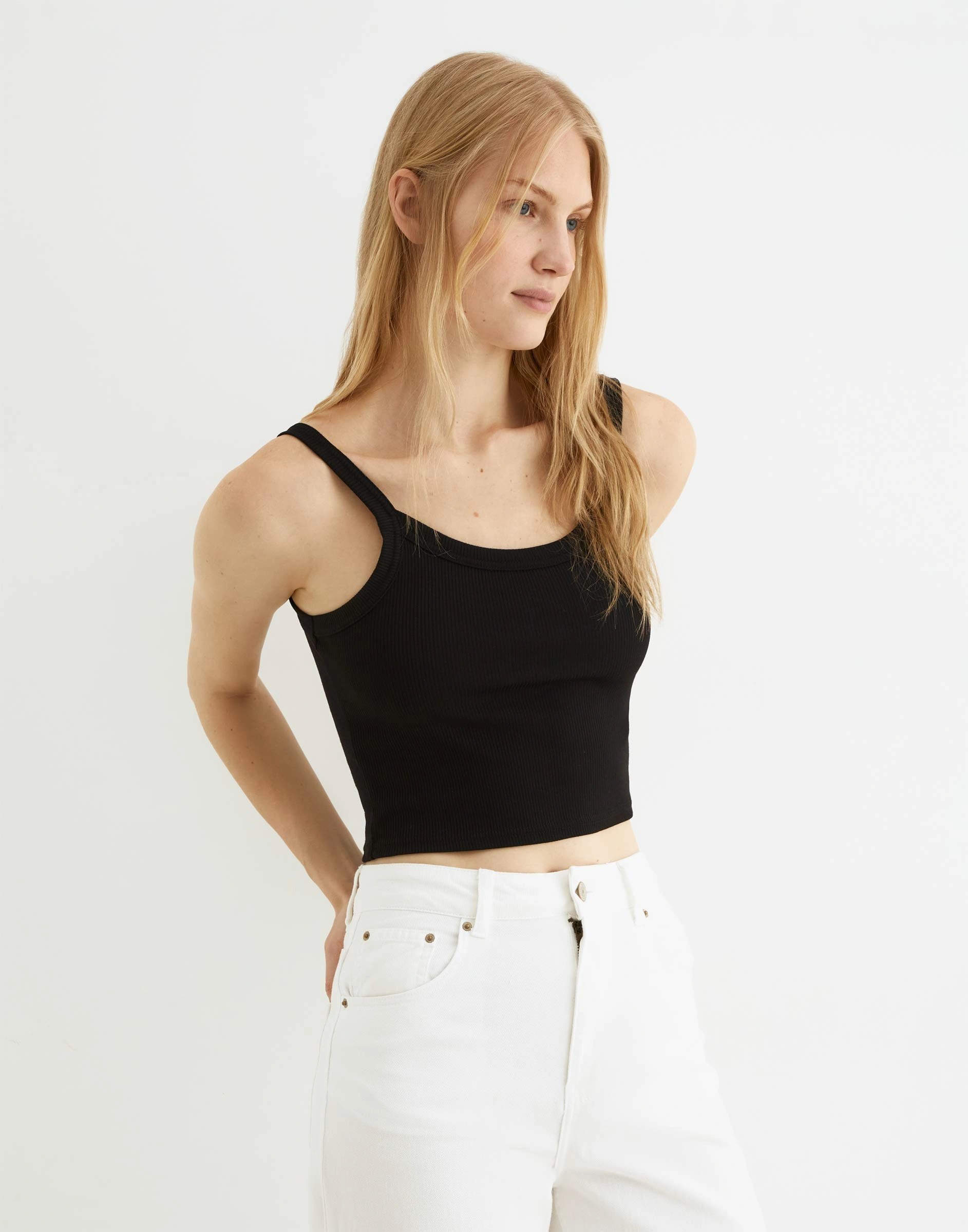 Чёрный базовый кроп-топ в рубчик Gtn004473-2