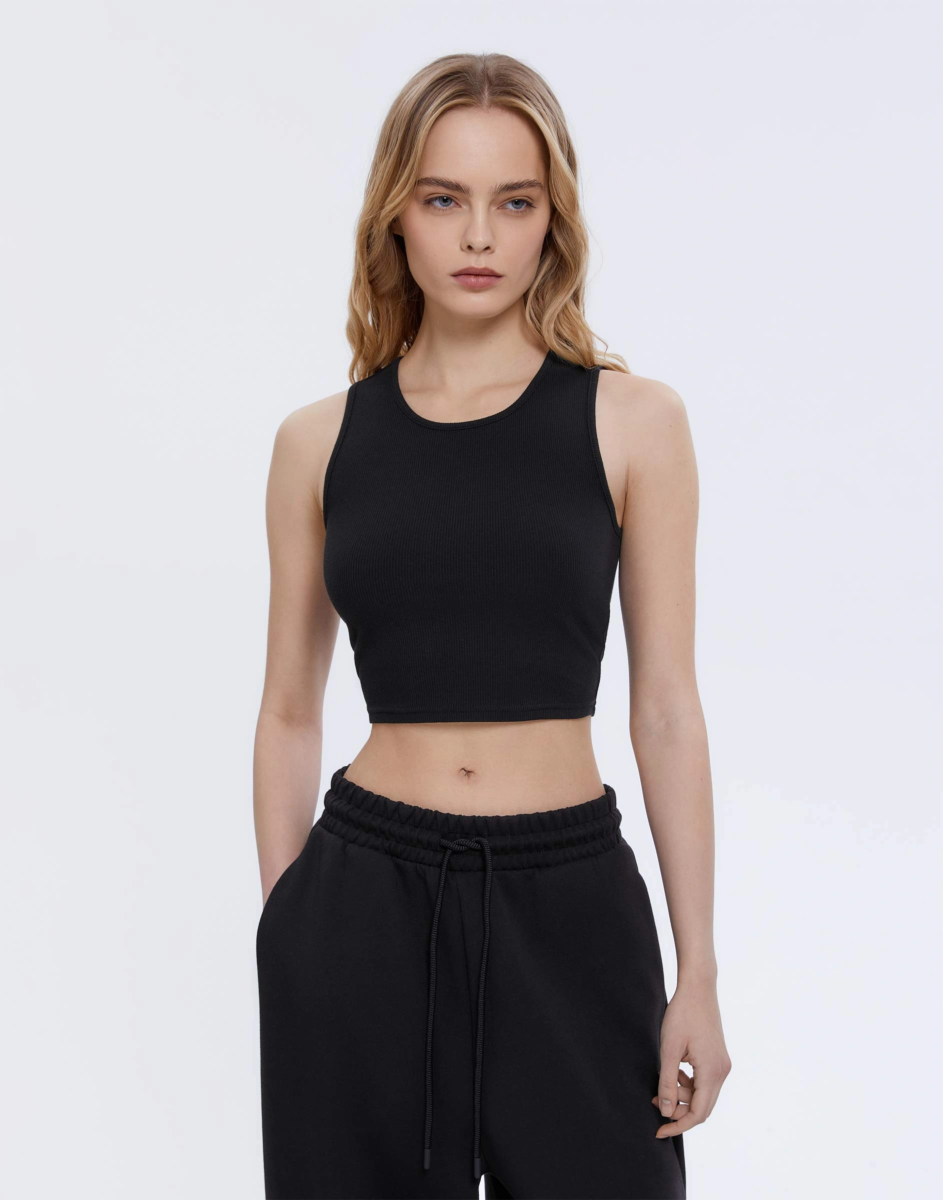 Чёрный базовый кроп-топ в рубчик Gtn004576-2