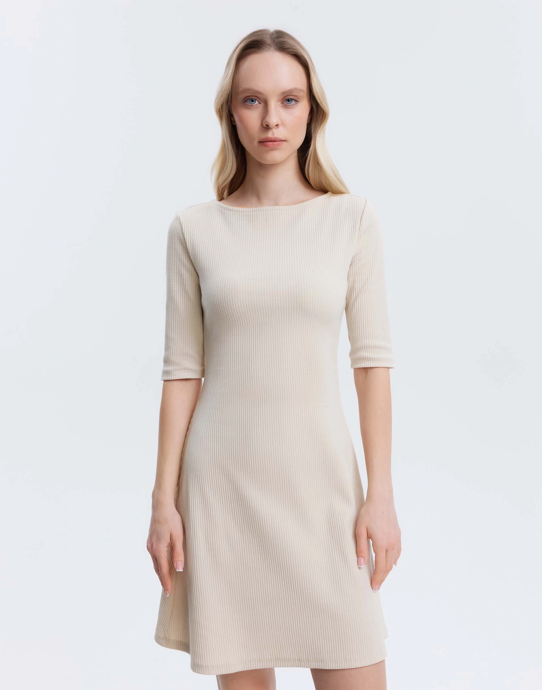 Молочное мини-платье в рубчик Gdr030018-2
