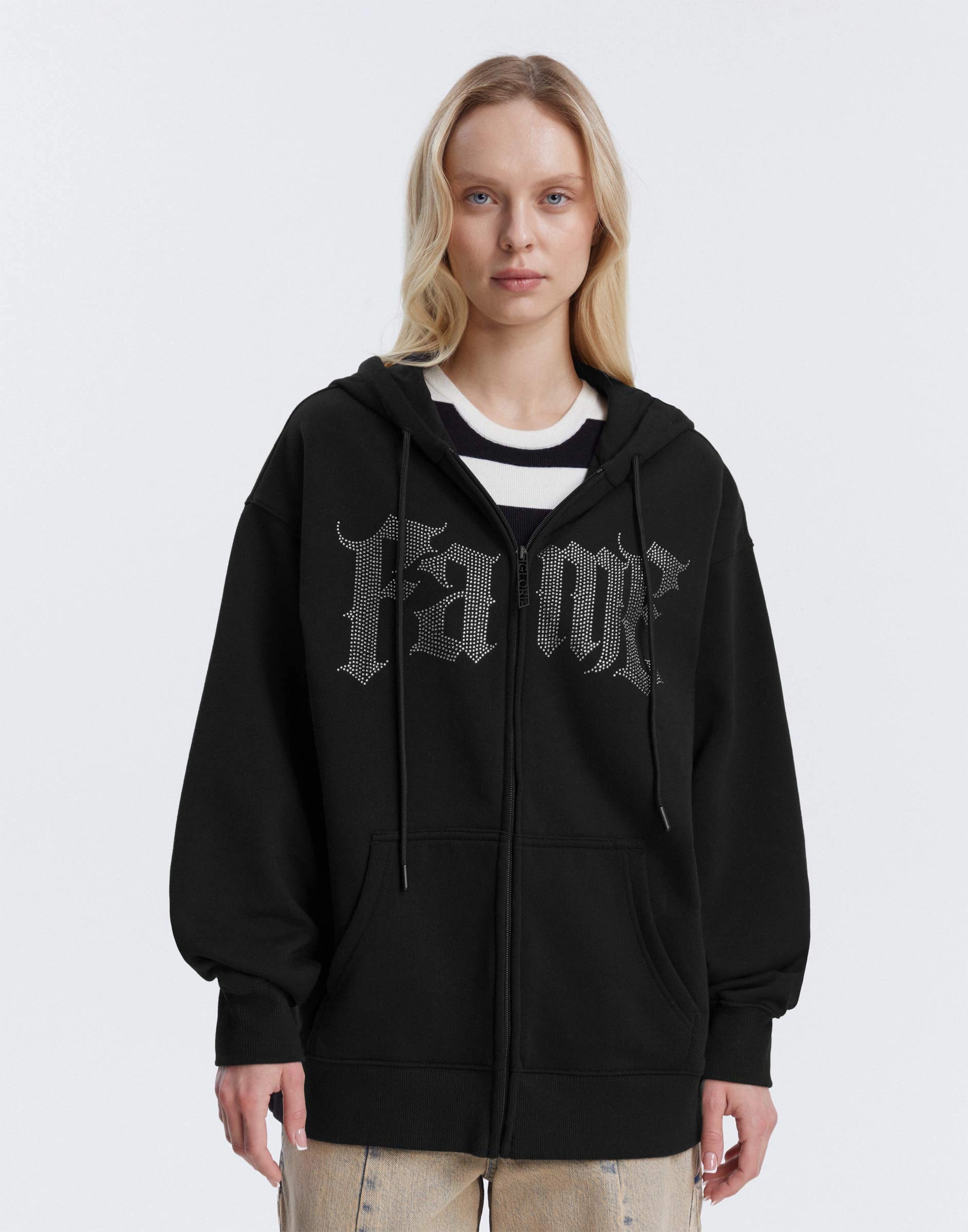 Чёрная толстовка oversize с вышивкой Gac023197-2