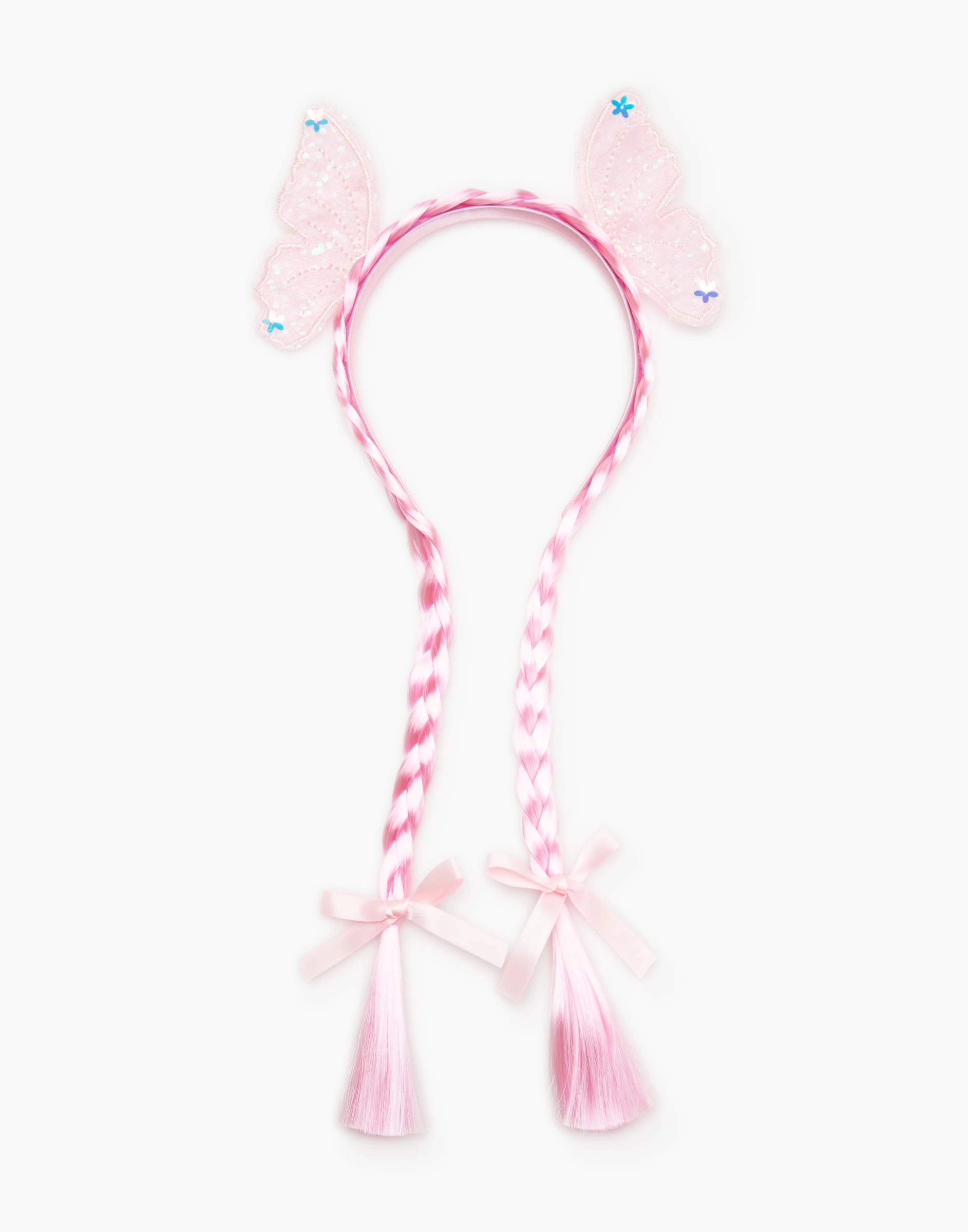 Розовый ободок с ушками и накладными косами Gjw012444-2