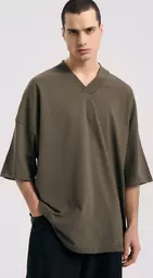 Футболка оверсайз из хлопка с V-образным вырезом 54866