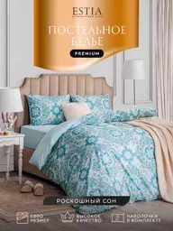 Комплект постельного белья евро Estia Эльснер перкаль цвет: лазурный/бирюзовый/приглушенный желтый, 4предмета