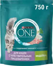 Сухой корм для кошек с чувствительным пищеварением Purina One индейка, 750г
