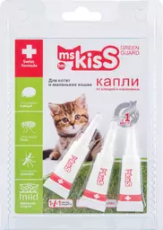 Капли от клещей и насекомых для котят и маленьких кошек Ms. Kiss, 3 шт. × 2.5мл