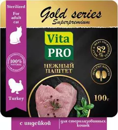 Влажный корм для стерилизованных кошек Vita Pro Gold Series Superpremium индейка нежный паштет, 100г