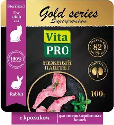 Влажный корм для стерилизованных кошек Vita Pro Gold Series Superpremium кролик нежный паштет, 100г