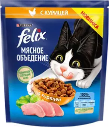Сухой корм для кошек Felix Мясное объедение курица, 600г