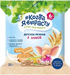 Печенье детское Когда я вырасту 5 злаков, с 6 месяцев, 35г