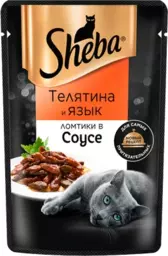 Влажный корм для кошек Sheba, ломтики в соусе с телятиной и языком, 75г