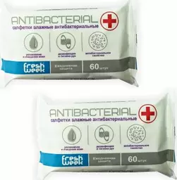 Fresh Week, Влажные салфетки Fresh Week Антибактериальные, 60 шт
