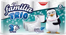 Familia Trio, Туалетная бумага Familia Trio 3 слоя, 8 рулонов