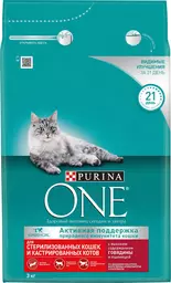 Корм сухой Purina One для стерилизованных кошек и кастрированных котов с говядиной и пшеницей, 3кг